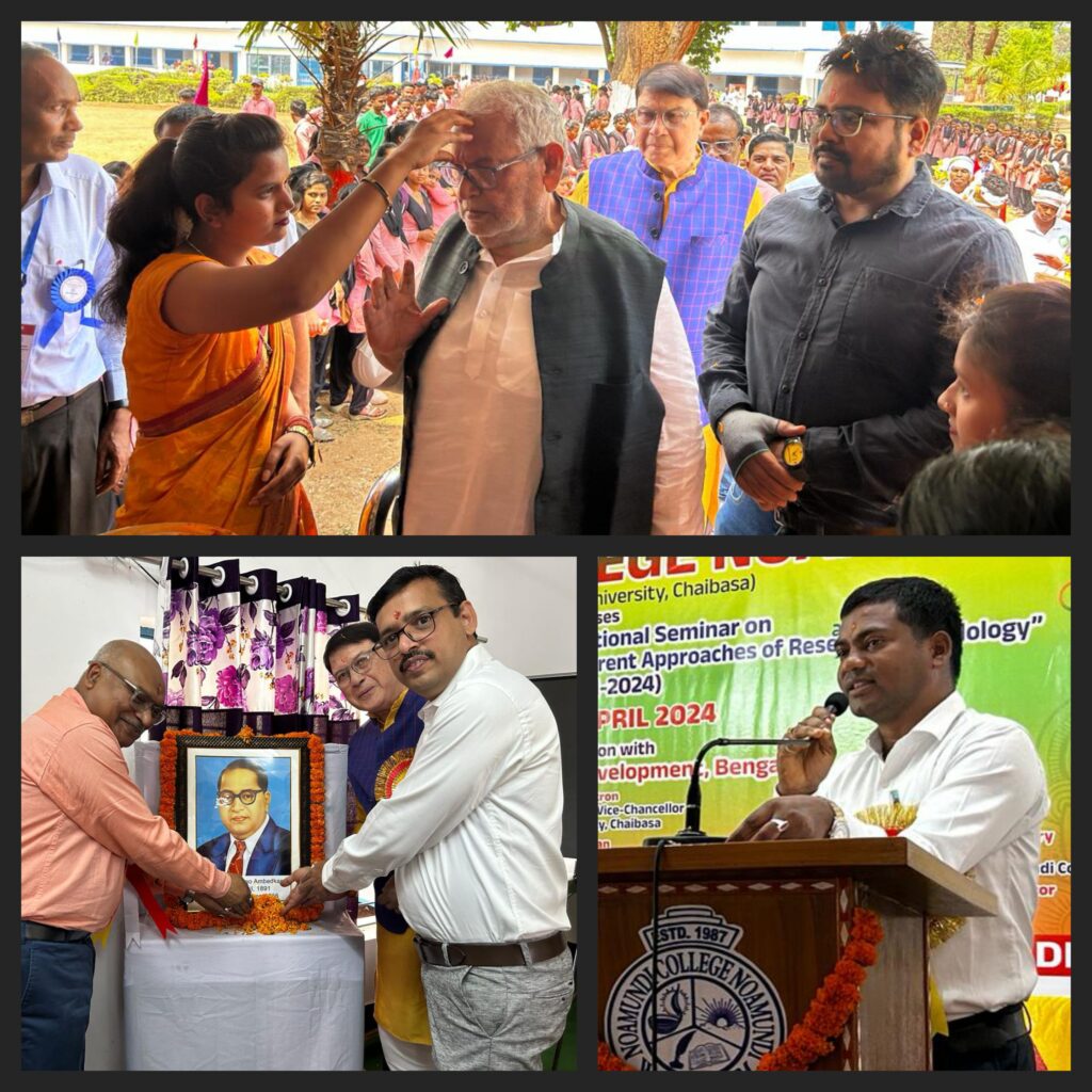 नोवामुंडी कॉलेज कॉलेज के आईक्यूएसी सेल एवं टुकेन रिसर्च एंड डेवलपमेंट बेंगलुरु, कर्नाटक के संयुक्त तत्वाधान में दो दिवसीय राष्ट्रीय सेमिनार का कॉलेज परिसर में स्थित सेमिनार हॉल में आयोजित हुई। सेमिनार का विषय अनुसंधान पद्धति के विभिन्न दृष्टिकोणो की पहचान और विश्लेषण के प्रभाव पर आधारित था।कार्यक्रम का शुभारंभ मुख्य अतिथि कोल्हान विश्वविद्यालय के रजिस्ट्रार डॉ राजेंद्र भारती के द्वारा संविधान के जनक बाबा भीमराव अंबेडकर के 133 वीं जयंती के पावन अवसर पर दीप प्रज्ज्वलन और माल्यार्पण कर किया। इस दौरान कॉलेज के प्राचार्य डॉ मनोजित विश्वास ने अपने स्वागत भाषण में कार्यक्रम में उपस्थित होने के लिए सभी अतिथियों और वक्ताओं के प्रति आभार प्रकट कर अतिथियों का सम्मान बुके देकर और शाॅल ओढ़ाकर कर किया । कार्यक्रम में उपस्थित मुख्य अतिथि कोल्हन विश्वविद्यालय के रजिस्टर डॉ राजेंद्र भारती ने कहा कि सारंडा क्षेत्र में स्थित नोवामुंडी कॉलेज के छात्र-छात्राओं में अद्भुत प्रतिभा छुपी हुई है आवश्यकता है इन्हें निखार कर बाहर लाने की, उन्होंने छात्रों से कहा कि आधुनिक युग में पढ़ाई के लिए तकनीकी यंत्रों का सहारा ना ले लिखने पढ़ने के लिए उन्हें खुद से प्रयास करना चाहिए तभी उनका विकास संभव है। उन्होंने कहा की शिक्षकों को निस्वार्थ भावना से छात्रों को शिक्षा देना ही उनका परम कर्तव्य होना चाहिए।