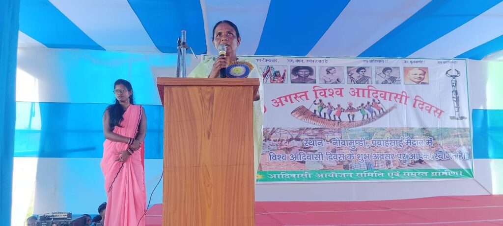 मैं भरोसा और विश्वास दिलाती हूँ, जब जब आदिवासी अस्तित्व को लेकर मेरी जरूरत पढेंगी अंतिम सांस तक आवाज बुलंद करती रहूँगी। कार्यक्रम के विशिष्ट अतिथि डाॅ अनुज लुगून ने कहा, हम लोगों को आज भी संवैधानिक रूप से आदिवासी नही मना रहे हैं। हमें आज भी जन जाति व वनवासी कह कर पुकारा जाता है। महामहिम मुर्मू जी संज्ञान लें। हमें न्याय दिलायें अलग राज्य बना 20 साल से अधिक हुये ,लेकिन इस पर ध्यान नहीं दिया गया। हमें आदिवासी होने का अधिकार नहीं दिये गये। नोवामुंडी अंचल सबसे अधिक राजस्व देने वाला है। फिर भी यहाँ विकास नही हो पाया है। डीएमएफटी फंड आदिवासियों के सर्वांगीण विकास के लिये खर्च किया जाये। आदमी आदमी के हक व अधिकार मार रहे हैं। यहाँ मानवाधिकार का हनन हो रहा है। 1994 से आज तक हमारे अधिकारों का हनन जारी है। सामाजिक न्याय भी नही मिल रहा है। कौन हमारे अधिकारों की रक्षा करेगा। मानकी व मुंडा जब एकजुट हो जायेंगे ,तो आनलाईन मलगुजारी रसीद भी नही कटेगा। कहा,लैंड बैंक का विरोध करें,जल,जंगल जमीन की रक्षा कीजिये। जमीन के अधिकार को आदिवासियों के मौलिक अधिकार घोषित किया जाये,इस लिये हमें एकजुट होना होगा। श्री लुगून ने एक प्रोफेसर की भाँति ग्राम सभा,विल्केंशन रूल,पाँचवीं अनुसूची,पेशा कानून आदि पर विस्तार से प्रकास डाले। आदिवासी कभी किसी की अधीनता स्वीकार नही किया। सरकार कारखाना, रेलवे विकास के नाम पर ले रही है। कल के लिये जल, जंगल व जमीन को बचाना है। लक्ष्मी नारायण लागुरी ने कहा, 5 वीं अनुसूची व पेसा कानून अगर लागु होगा,तो हमें न्याय मिलेगा। हम लोग जल,जंगल व जमीन के मालिक हैं,लेकिन दिकू लोगों के यहाँ नौकर का काम करते हैं। हम लोग कैसे खुशहाल होंगे,इस पर चिंतन करने की जरूरत है। पूर्व एमएलए मंगलसिंह बोबोंगा ने कहा, डीएमएफटी फंड का उपयोग आदिवासियों के सर्वांगीण विकास के लिये होना चाहिये। जल,जंगल व जमीन की रक्षा करने लिये जनता,मानकी व मुंडा को एकजुट होना होगा। इसके अलावा कार्यक्रम को डेबराम तूबिड,लक्ष्मी नारायण लागुरी,उपेंद्र लागुरी,घनश्याम हेंब्रम आदि ने भी संबोधित किया इन गाँवों के युवक व युवतियों ने पेश किया सांस्कृतिक कार्यक्रमराजस्व ग्राम नोवामुंडी बस्ती,गुंडीजोडा,मेरलगढा,डूकासाई,महूदी,पदापडाड,सरबिल,इटरबालजोडी,कुचीबेडा,कुमिरता,कुटिंगता,टोंटोपोसी,कोटगढ,कातिकोडा,उईसिया,रेंगाडबेडा,लोकेसाई,बाहदा,दूधबिला आदि। वहीं मौके पर मुख्य रूप से पूर्व विधायक मंगलसिंह बोबोंगा, डाॅ अनुज लुगून,इजहार राही,लक्ष्मी नारायण लागुरी,ज्वाला कोडा,उपेंद्र लागुरी,कृष्णा सिंकु,गौतम मिंज,अम्बिका दास,घनश्याम हेंब्रम, दुर्गा देवगम,सुरेश टूटी, टीएसएफ के लीडर तुलसी दास गणवीर,फिरोज अहमद,मुंडा घासोवा बारजो,रसिका बोबों