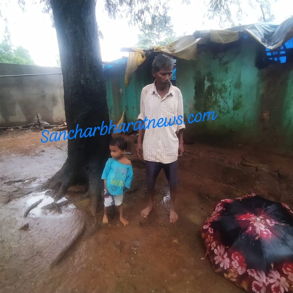 तोड़ेतोपा निवासी राजू दास अपने 5 बच्चो के साथ कच्ची ईट और मिट्टी से बने झोपड़ी में रहते है।