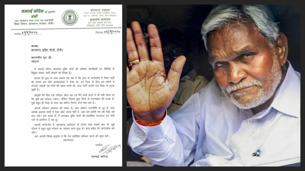 पूर्व मुख्यमंत्री चंपई सोरेन ने झारखंड मुक्ति मोर्चा के प्राथमिक सदस्यता और सभी पदों से त्यागपत्र दे दिया है।उन्होंने कहा कि आदिवासी, मूलवासी ,दलितों, पिछड़ों और आम जनता की हर मुद्दों को लेकर हमारा संघर्ष सदैव जारी रहेगा ।देखिए क्या लिखा है पूर्व मुख्यमंत्री चंपई में त्यागपत्र में