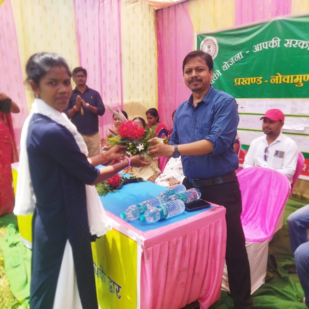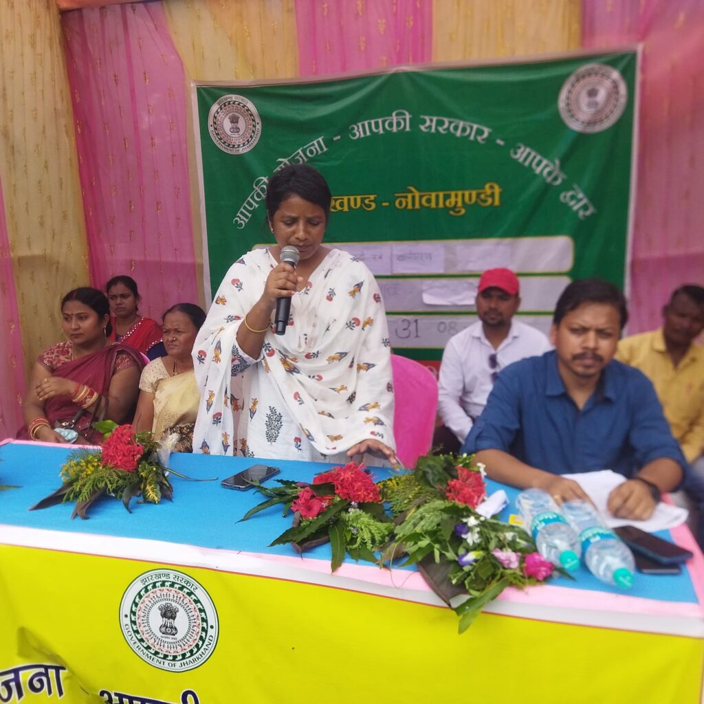 नोवामुंडी:प्रखंड परिसर में रविवार को आपकी योजना,आपकी सरकार, आप के द्वार कार्यक्रम आयोजित किया गया.कार्यक्रम का विधिवत उद्घाटन दीप प्रज्ज्वलित कर कार्यक्रम की मुख्य अतिथि जिला परिषद सदस्य चेयर मेन सुश्री लक्ष्मी सुरेन, बीडीओ अनुज बांडो, महूदी पंचायत की मुखिया लक्ष्मी देवी, बालीझरन पंचायत के मुखिया रवि सामड,और डूकासाई के मुंडा घासोवा बरजो के द्वारा संयुक्त रूप से लिया गया.