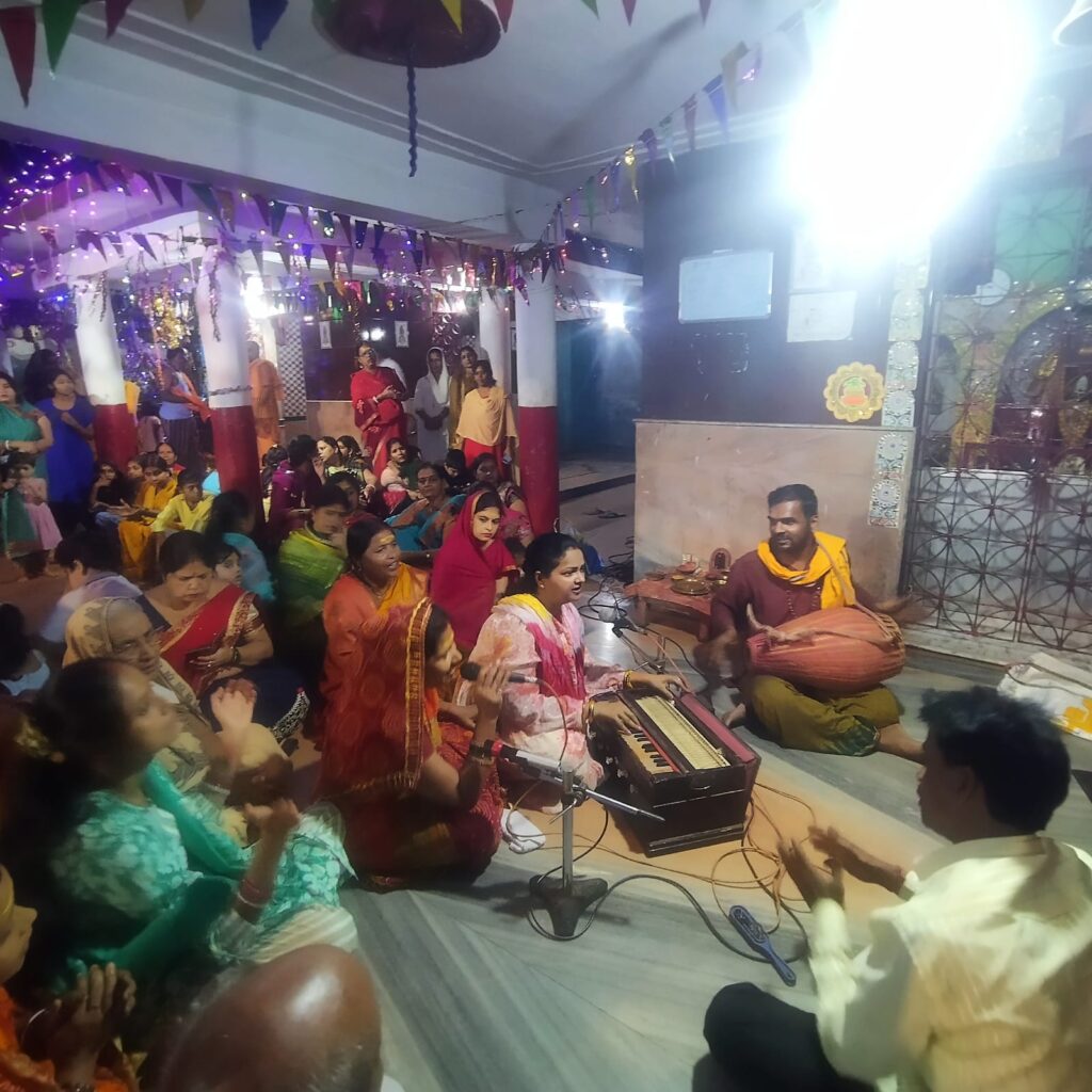 स्थानीय कलाकारों के द्वारा काफी सुंदर भजन की प्रस्तुति की गई। भजन कीर्तन के बाद भगवन श्री कृष्ण की विधिवत पूजा अर्चना के बाद भगवान श्री कृष्ण महा आरती की गईं और सभी प्रभु के भक्तो के बीच महा प्रसाद पुड़ी,सब्जी,और हलवा का वितरण किया गया। भक्तों की भारी भीड़ मंदिर परिसर में देखने को मिली। सबने बारी बारी से लाइन लगाकर प्रभु के महा प्रसाद का आनंद लिया ।