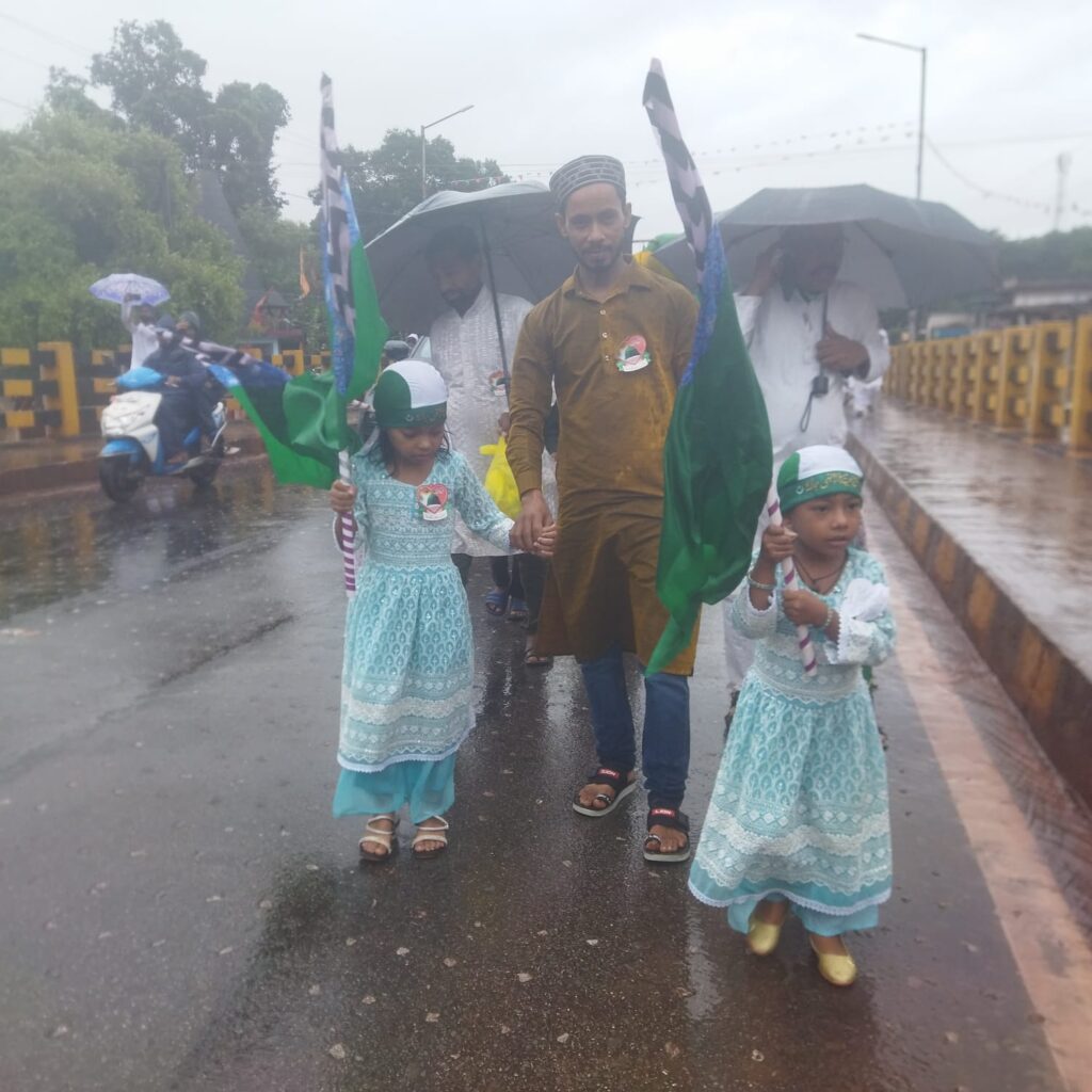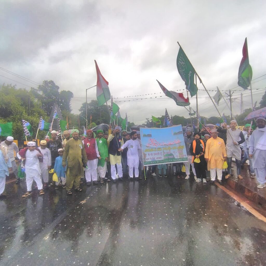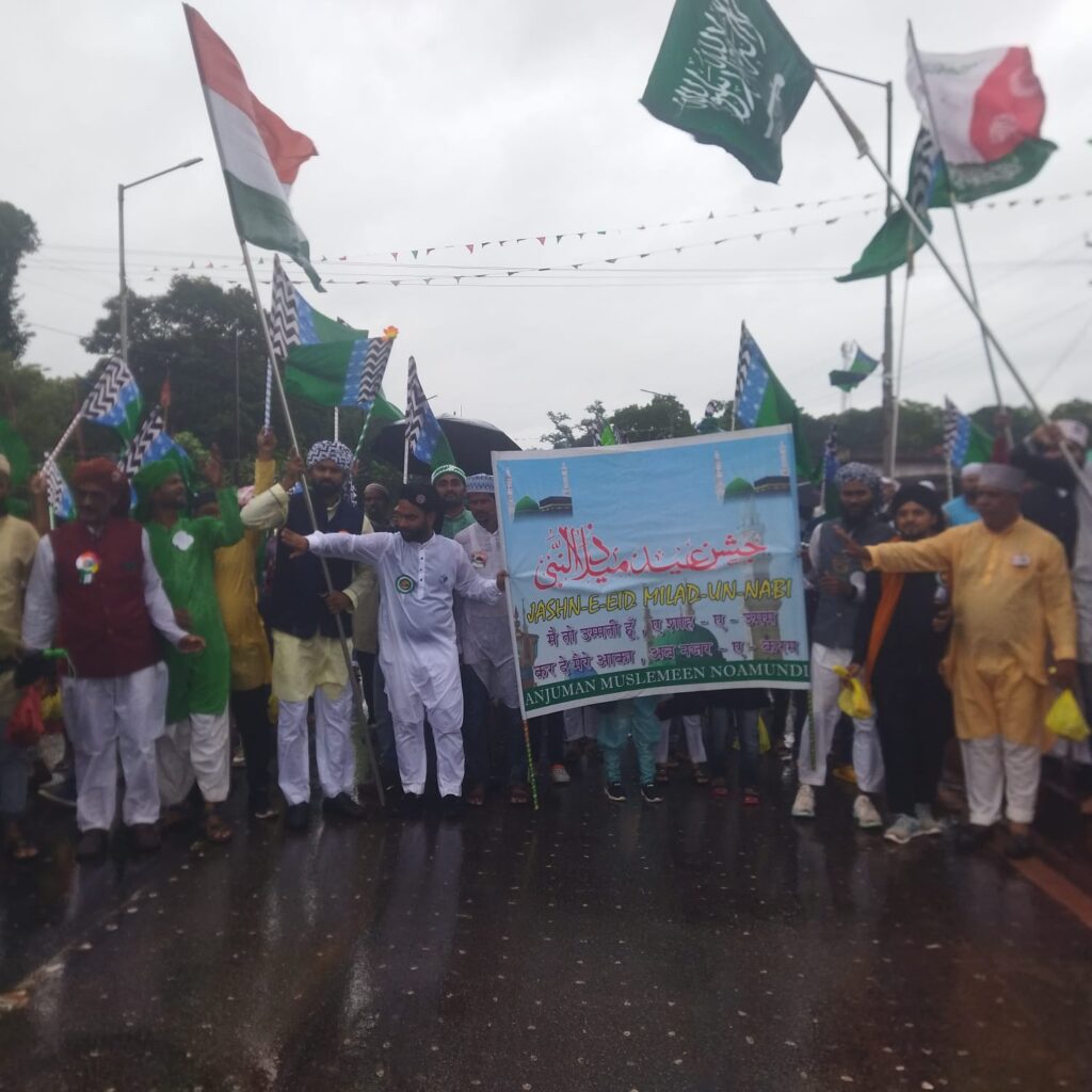 नोवामुंडी: नोआमुंडी में इस्लाम धर्म के संस्थापक पैगम्बर हजरत मोहम्मद के जन्मदिन के मौके पर जुलूस ए मोहमदी जामा मस्जिद से निकाली गयी. जुलूस जामा मस्जिद से निकलकर गाजे बाजे के साथ रेलवे फाटक होते हुए थाना के सामने से ओवर ब्रिज होते हुए टाटरा हाटिंग इमाम बाड़ा में सलामे दुआ के साथ समापन हुआ. यह जुलूस अंजुमन मुस्लिम कमिटी के सदर फिरोज खान और सेकेट्री मोहमद यासीन की संजुक्त अध्यक्षता में निकाली गई. मौके पर देश और दुनिया की अमन और शांति के लिए दुआ की गई. जुलूस में विधि व्यवस्था को लेकर नोआमुंडी पुलिस प्रशासन की टीम काफी मुस्तैद थी. जुलूस के समय भारी गाड़ियों का परिचालन बंद कर दिया गया था. जुलूस में मुख्य रूप से अंजुमन मुस्लिम कमिटी के सदर फिरोज ख़ान,