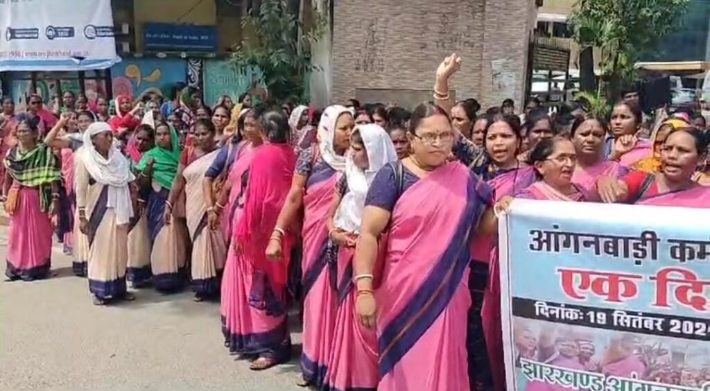 जमशेदपुर। आंगनबाडी सेविका और सहायिकाओं ने साकची आम बगान से जुलुस निकाल कर जिला उपायुक्त कार्यालय पर जोरदार प्रदर्शन किया सभी अपनी सात सूत्री मांग को लेकर जिला के उपायुक्त के माध्यम राज्य के मुख्यमंत्री को अपनी मांग पत्र दिया है। पुरे जिला से लगभग सैकड़ो आंगनबाडी सेविका और सहायिकाओं ने जिला उपायुक्त कार्यालय पर एक दिवसीय प्रदर्शन सह धरना दिया है। उनका साफ तौर पर कहना है कि सरकार उन्हें जो मानदेय प्रदान करती है वो काफ़ी कम है। इनके अनुसार इन्हे सरकार द्वारा तय न्यूनतम मानदेय प्रदान किया जाना चाहिए।उन्होंने कहा कि सरकार अगर उनकी मांगों को नहीं मानेगी तो आने वाले एक अक्टूबर से सभी आंगनबाडी सेविका और सहायिकाओं का अनिश्चित कालीन हड़ताल पर चली जाएंगी। सभी ने राज्य सरकार के पास कड़े शब्दों मे अपनी मांगो को रखा है। साथ ही हड़ताल की चेतावनी भी दी है।