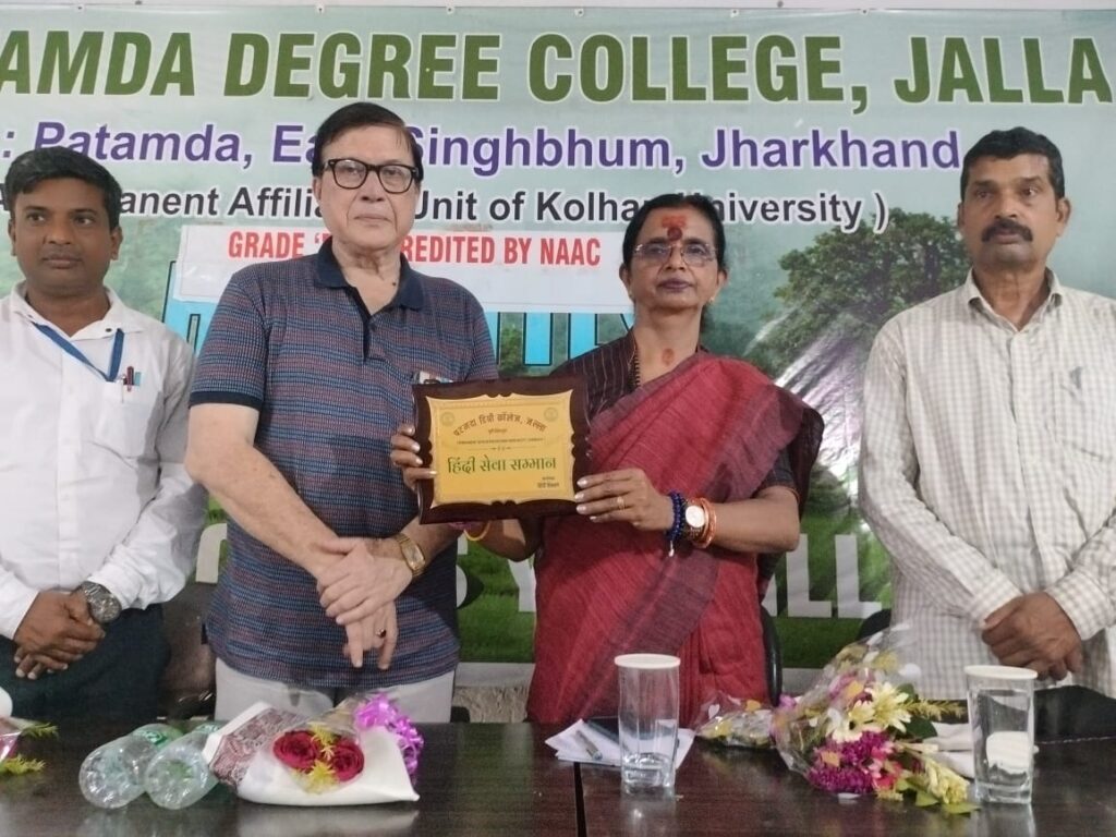 जमशेदपुर। पटमदा डिग्री कॉलेज के सभागार में हिंदी पखवाड़ा दिवस के शुभ अवसर पर राष्ट्र कवि रामधारी सिंह दिनकर के काव्यों में राष्ट्रीय चेतना विषय पर एक दिवसीय संगोष्ठी का आयोजन किया गया। मुख्य अतिथि के रुप में महिला विश्वविद्यालय जमशेदपुर महिला विश्वविद्यालय की एजुकेशन डिपार्टमेंट की प्राध्यापिका एवं इंदिरा गांधी मुक्त विश्वविद्यालय के को ऑर्डिनेटर डॉक्टर त्रिपुरा झा उपस्थित थी। शिक्षाविद् डॉक्टर त्रिपुरा झा हिन्दी सेवा सम्मान से सम्मानित हुई। उन्होने कहा कि दिनकर जी हिंदी के राष्ट्रवादी चेतना के कवि हैं। उनके काव्यों में राष्ट्रीय चेतना के साथ-साथ समाजवाद भी है। मौके पर अतिथि के रूप मे उपस्थित +टू विद्यालय के प्रधानाध्यापक एवं