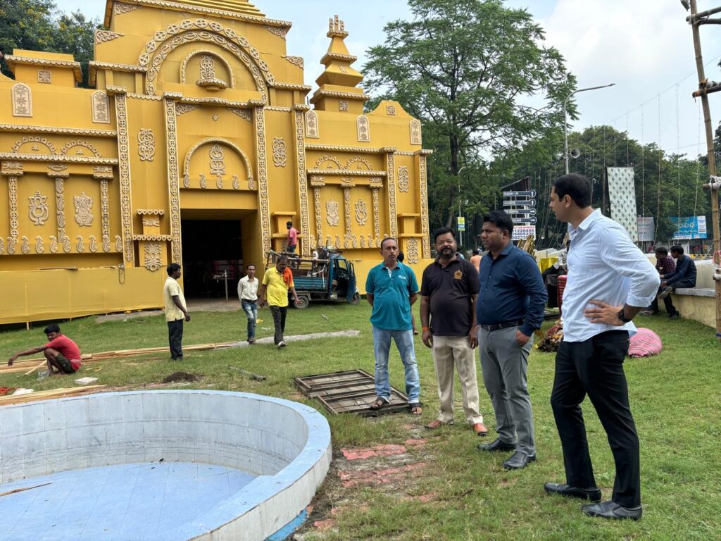 जमशेदपुर शहरी क्षेत्र के विभिन्न इलाकों में दुर्गा पूजा धूमधाम से मनाया जा रहा है। जगह-जगह भव्य पंडाल बनाए जा रहे हैं। पूजा के दौरान विधि व्यवस्था संधारण, सुरक्षा उपायों के अनुपालन को लेकर जिला दण्डाधिकारी सह उपायुक्त श्री अनन्य मित्तल के निर्देशानुसार दण्डाधिकारी- पुलिस पदाधिकारी लगातार पूजा पंडाल का निरीक्षण कर रहे हैं। इसी क्रम में एलआरडीसी धालभूम ने विभिन्न थाना क्षेत्रों में पूजा पंडाल का निरीक्षण कर पण्डाल निर्माण का जायजा लिया। उन्होंने पूजा समितियों से शांतिपूर्ण माहौल में दुर्गा पूजा संपन्न करने का निर्देश दिया। इस दौरान सभी पूजा समिति के लोगों को पूजा से संबंधित जारी गाइडलाइन का अनुपालन करने एवं विधि-व्यवस्था में पुलिस प्रशासन को सहयोग करने का दिशा निर्देश दिया। पूजा पंडाल में पूजा समिति द्वारा किए जा रहे हर प्रकार के तैयारी का जायजा लेते हुए फीडबैक लिया।