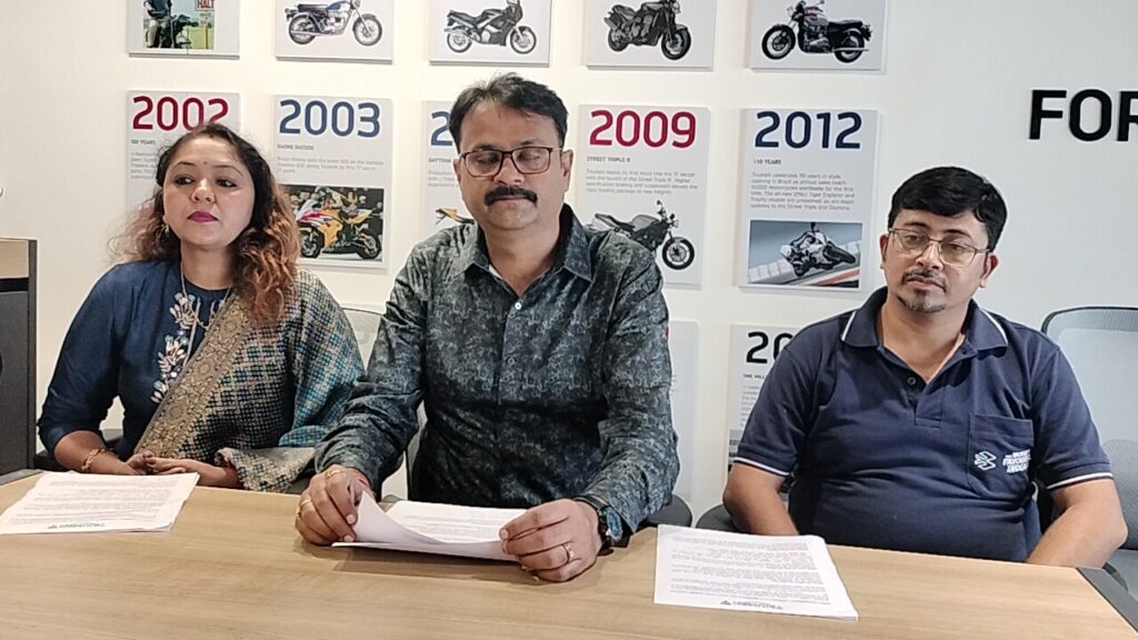 जमशेदपुर। विश्व की सुप्रसिद्ध मोटरसाइकल कंपनी ट्रायमफ द्वारा जमशेदपुर मे अपना पहला अपना शोरूम खोला जा रहा है। इसको लेकर भारत देश मे कुल 108 शोरूम कंपनी की हो चुकी है। इससे पूर्व झारखण्ड मे केवल रांची मे इसका शोरूम था, मानगो के एनएच 33 मे इसका शोरूम खोला गया है। बता दे हेवी मोटरसाईकल प्रेमियों के बिच यह ब्रांड काफ़ी मशहूर है, भारत मे ट्रायमफ मोटर्स ने बजाज ऑटो के साथ हाथ मिलाकर भारतीय बाजार मे नये मॉडल्स उतारे हैँ 400 सीसी की बाईक को बाजार मे उतारा गया है, जमशेदपुर शोरूम के संचालक आशीष रनपारा ने कहा की इस शोरूम मे सेल्स एवं सर्विस दोनों ही सुविधा उपलब्ध है साथ ही आगामी त्योहारों मे ग्राहकों को विशेष उपहार भी दिए जायेंगे। बता दे ट्रायमफ मोटर्स की स्थापना वर्ष 1902 मे यु.के से हुई थी और कंपनी ने अब तक 122 वर्ष सफलता पूर्वक पूर्ण कर लिया है।