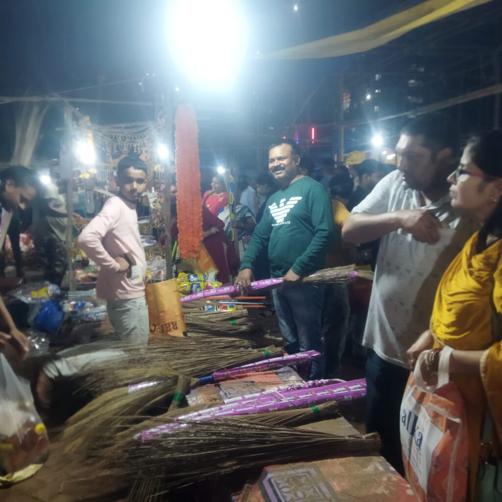 बर्तन की दुकानें लाइट,झाड़ू और दिया , दुकानें की दुकानों से पूरा नोआमुंडी जजमगा रहा है।