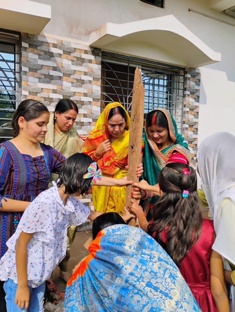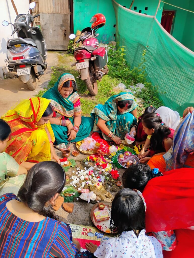 सभी महिलाओ ने गोबर की आकृति की यमराज और उनकी पत्नी की पूजा करती है और भाई को तिलक लगाकर उनकी लंबी उम्र और खुशहाली की प्रार्थना करती है