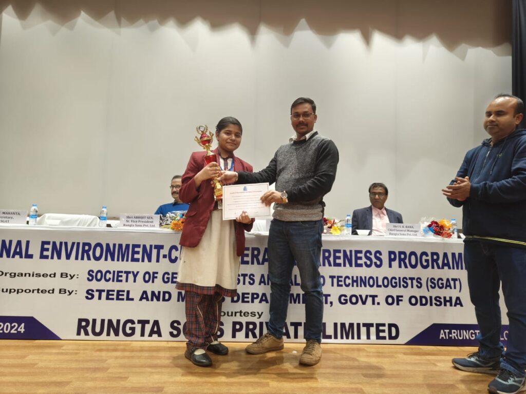 नोवामुंडी,28 नवम्बर: डी.ए.वी.नोवामुंडी ने SGAT 2024 का ओवर आॅल चैम्पियनशिप जीत लिया है | दिनाँक 27 नवम्बर को मिनरल्स एंड माइंस विभाग ओड़िसा के द्वारा बरबिल के रूंगटा कोलोनी में भूवैज्ञानिकों और संबद्ध प्रौद्योगिकीविदों का समाज (SGAT) द्वारा इस कार्यक्रम का आयोजन किया गया था| इसमें 22 विद्यालय से 44 प्रतिभागी शामिल हुए थे | प्रतियोगिता में क्विज, लेख लेखन , मिनरल पहचानो आदि का आयोजन किया गया था | इसमें टाटा डी.ए.वी. ने प्रथम स्थान प्राप्त किया | प्रतिभागी कक्षा – 9 के श्रीजा पॉल एवं आत्रेयो सिन्हा ने अपने मार्गदर्शक भौतिकी विषय शिक्षक श्री ज्योति प्रकाश साहू एवं प्राचार्य श्री प्रशांत कुमार भुयान का विशेष धन्यवाद करते हुए कहा कि इनके उचित मार्गदर्शन में ही ये उपलब्धि हासिल हो पाई है|ज्ञात हो कि श्रीजा पॉल को अव्वल लेख लेखन हेतु विशेष पुरस्कार एवं ट्रॉफी से सम्मानित किया गया है|प्राचार्य श्री प्रशांत कुमार भुयान ने कहा कि पर्यावरण के प्रति चेतना आज समय की मांग बन गयी है, जिसमें इस तरह के कार्यक्रम अच्छी जागरूकता फैला रहे हैं | हमारा विद्यालय विगत कई वर्षों से उक्त कार्यक्रम का ओवर आल चैम्पियनशिप विजेता रहा है | बच्चों के सर्वांगीण विकास में इस तरह की शैक्षणिक गतिविधियों का बहुत योगदान है। अतः इन गतिविधियों का आयोजन किया गया है। इसमें बच्चों की तथा अभिभावकों की सहभागिता एक शुभ संकेत है। आशा है कि बच्चे आगे भी इस कार्यक्रम से पूर्णतः लाभान्वित होंगे। दोनों विजेता प्रतिभागियों को विद्यालय की मोर्निंग असेम्बली में सम्मानित किया गया | विद्यालय परिवार में उत्साह का माहौल रहा |
