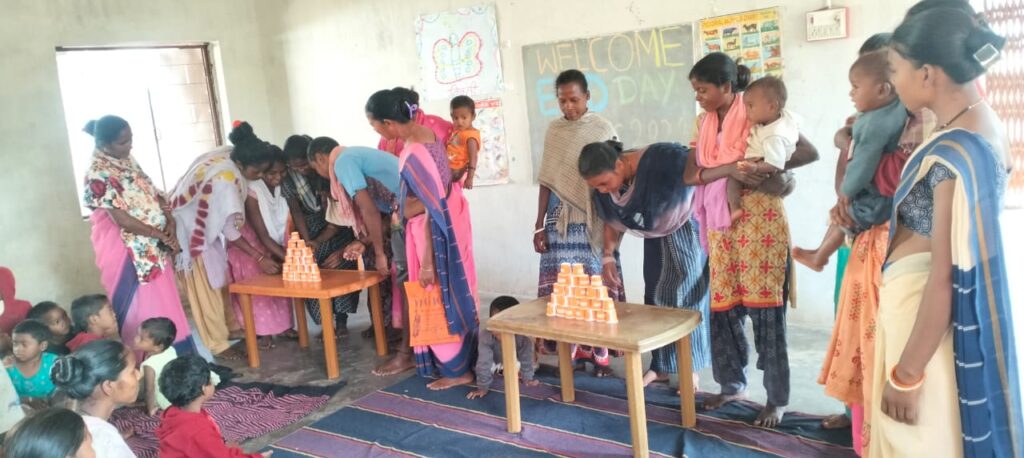 और दूसरा गतिविधिकप के माध्यम से टावर निर्माण कर नीव के निर्माण पर चर्चा किया गया टावर गतिविधि के माध्यम से एहसास दिलाया गया की किस तरह से बच्चों की नीवको मजबूती प्रदान कर सकते हैं जिसमें मुख्य रूप से अच्छा स्वास्थ्य ,पर्याप्त पोषण सुरक्षा और संरक्षण उत्तरदाई देखभाल तथा