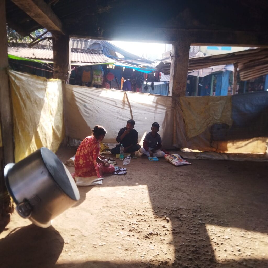 दाल भात केंद्र यहाँ बैशाखी के सहारे चल रहा है. खाना पकाने वाला बर्तन भी टूट फूट हो चला हैं. लकड़ी चूल्हा में खाना बनाना पड़ता है. यहाँ तक कि बर्तन रखने के लिए भी दरवाजा युक्त घर नही है. दाल भात केंद्र बंद करने के बाद दुर्गा पूजा पंडाल के सामने बने गोदाम में बर्तन रखना पड़ता है.