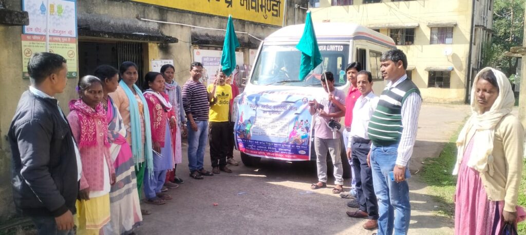 नोवामुंडी,22 जनवरी: जामदा सी एच सी रुता गुटु से आज प्रभारी डॉक्टर श्री हरि पद हेंब्रम ने 24 जनवरी को लगने वाले प्रखंड स्तरीय स्वास्थ्य मेला की जानकारी देने वाले प्रचार वाहन को हरी झंडी दिखाकर किया. रवाना लाउडस्पीकर के माध्यम से लोगों को 24 जनवरी को लगने वाले प्रखंड स्तरीय स्वास्थ्य मेला की जानकारी दी गई.