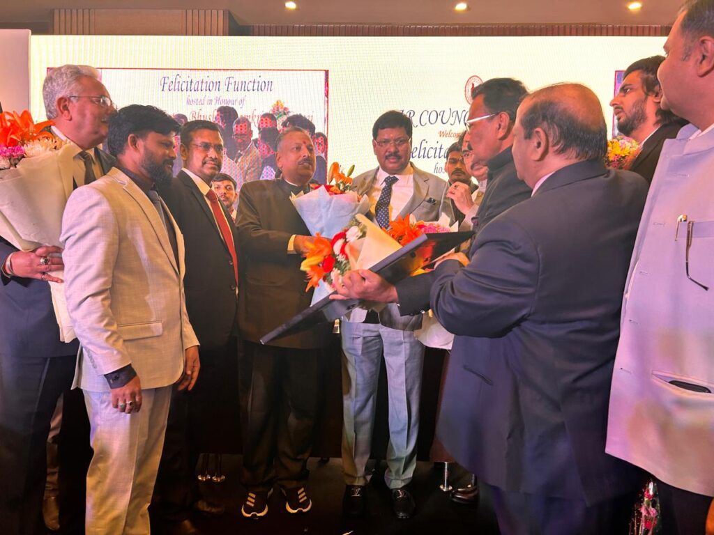 दिल्ली। नई दिल्ली में बार काउंसिल ऑफ इंडिया द्वारा होटल ललित में भारत के मुख्य न्यायाधीश न्यायमूर्ति श्री बी आर गवई का सम्मान समारोह बार काउंसिल ऑफ इंडिया के चेयरमैन और राज्यसभा के सांसद श्री मनन कुमार मिश्र की अध्यक्षता में आयोजित हुआ, जिसमें सर्वोच्च न्यायालय के न्यायधीशों और कई राज्यों के उच्च न्यायालय के मुख्य न्यायाधीश गणो के साथ देश के विभिन्न राज्यों के स्टेट बार काउंसिल के चेयरमैन और वाइस चेयरमैन तथा सुप्रीम कोर्ट बार एसोसिएशन के पदाधिकारियों ने भाग लिया तथा न्यायमूर्ति गवई का अभिनंदन किया l