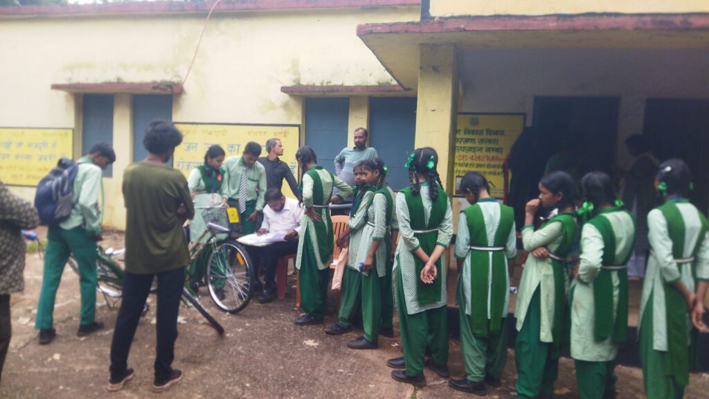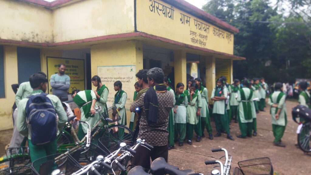 फोटो- साईकिल हाथों में आते ही छात्रों के चेहरे खिल उठे