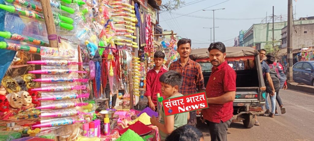 मंगलवार को खरीदारी के लिए बाजारों में भीड़ देखने को मिल रही है. हर कोई अपने जरूरत का सामान खरीदने में जुटा हुआ है.वहीं बच्चों में विशेष उत्साह का माहौल देखने को मिल रहा है.बच्चे पिचकारी ,रंग, अबीर ,गुलाल ,बैलून नए कपड़े सहित अन्य सामग्री खरीदवाने में जुट गए हैं. बाज़ार में तरह तरह के रंग देखने को मिल रहे हैं .हरा, गुलाबी, नीला, पीला, लाल, नारंगी रंग को देख लोग आकर्षित हो रहे हैं.