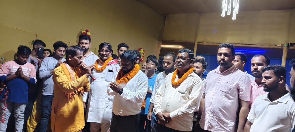 उन्होंने कहा की प्रथम पूज्य भगवान गजानन लोगों के विघ्नहर्ता है में विघ्न विनाशक भगवान गणेश से क्षेत्र के लोगों की मंगल कामना करता हूं इससे पहले किशोर संघ के अध्यक्ष नीरज कुमार सिंह ने माला पहनाकर स्वागत किया एवं जानेमाने लोकप्रिय युवा नेता एवं सामाजिक कार्यकर्ता राम हाँसदा का स्वागत शक्ति महतो ने माला पहना कर किया