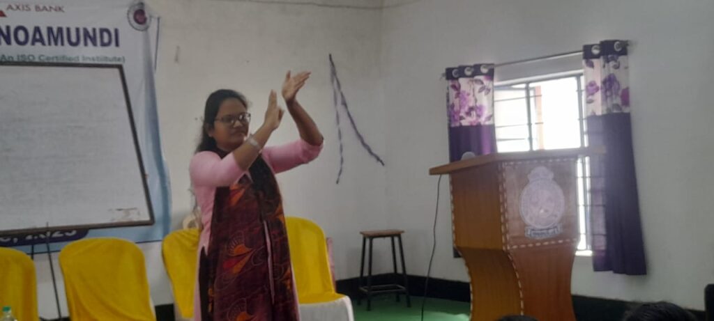नोवामुंडी कॉलेज के अम्बेडकर हॉल में टाटा स्टील फाउंडेशन के सबल प्रकल्प के अंतर्गत अंतरराष्ट्रीय सांकेतिक भाषा माह सितंबर -2025 के अवसर पर सांकेतिक भाषा जागरूकता कार्यशाला का आयोजन किया गया। यह कार्यक्रम कॉलेज के प्राचार्य डॉ. मनोजित विश्वास की अनुमति एवं दिशा-निर्देशन में सम्पन्न हुआ।