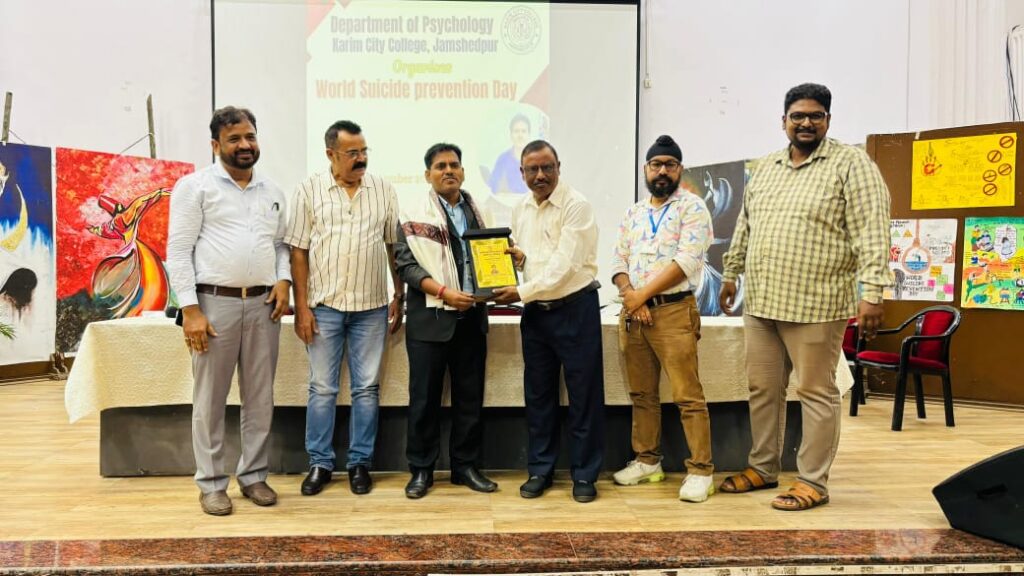 करीम सिटी कॉलेज 25 सितंबर 2025ऑब्जर्वेशन ऑफ वर्ल्ड सुसाइड प्रिवेंशन डे” के अवसर के अवसर संताल परगना कॉलेज के मनोविज्ञान विभाग के विभागाध्यक्ष एवं असिस्टेंट डीन सह मानसिक स्वास्थ्य परामर्श केंद्र निदेशक डॉ विनोद कुमार शर्मा ने करीम सिटी कॉलेज, जमशेदपुर द्वारा आयोजित एक दिवसीय कार्यक्रम में मुख्य अतिथि के रूप में शिरकत किया। करीम सिटी कॉलेज, जमशेदपुर के ऑडिटोरियम में प्राचार्य डॉ मोहम्मद रियाज़ की अध्यक्षता एवं विभागाध्यक्ष मनोविज्ञान विभाग डॉ फिरोज इब्राहिमी के नेतृत्व में संपादित ” ऑब्जर्वेशन ऑफ वर्ल्ड सुसाइड प्रिवेंशन डे” के अवसर पर विद्यार्थियों को संबोधित करते हुए डॉ विनोद कुमार शर्मा ने कहा कि आत्महत्या सभ्य समाज के लिए एक गंभीर चुनौती है। आत्महत्या एक संवेदनशील विषय है समाज में इसे सावधानी के साथ रखने की जरूरत है।