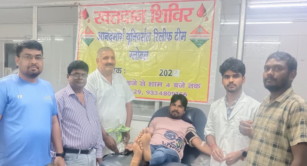 जमशेदपुर : पर्व त्योहार के दौरान स्वैच्छिक रक्तदान एवं शिविर में कमी को देखते हुए 29 सितंबर से 2 अक्टूबर तक प्रतिदिन 4 घंटे का चार दिवसीय रक्तदान शिविर का आयोजन किया गया है।आनंद मार्ग रक्तदान शिविर में रोगियों के स्वास्थ्य लाभ के लिए 4 घंटे में 25 रक्तदाताओं ने किया रक्तदान ।आनंद मार्ग यूनिवर्सल रिलीफ टीम ग्लोबल कि ओर से 130वा मासिक रक्त दान शिविर में ईश्वर कोटि के मनुष्यों ने 25 यूनिट रक्तदान किया एवं 50 पौधा वितरण किया गया । सुनील आनंद का कहना है कि जितने भी रक्तदाता निस्वार्थ भाव से रक्तदान करते हैं वह सभी लोग ईश्वर कोटि के मनुष्य है करण इस रक्तदान करने में रक्तदाता का किसी प्रकार का कोई भी स्वार्थ नहीं रहता परम पुरुष के बच्चे अपने संस्कारगत कारण से कष्ट भोग कर रहे हैं उन बच्चों के स्वास्थ्य लाभ के लिए जो रक्तदान करते हैं इसलिए इस तरह के मनुष्य को ईश्वर कोटि के मनुष्य कहा गया है। रक्त दाताओं के बीच ज्ञान रंजन श्रीवास्तव टाटा वर्कर्स यूनियन कमिटी मेंबर टेक्नोलॉजी सर्विसेज, ट्यूब डिवीजन पौधा एवं प्रशस्ति पत्र देकर किया गया सम्मानित ।कल दूसरे दिन भी 30 सितंबर को सुबह 9 बजे से दोपहर 1 बजे तक आयोजित किया गया है।