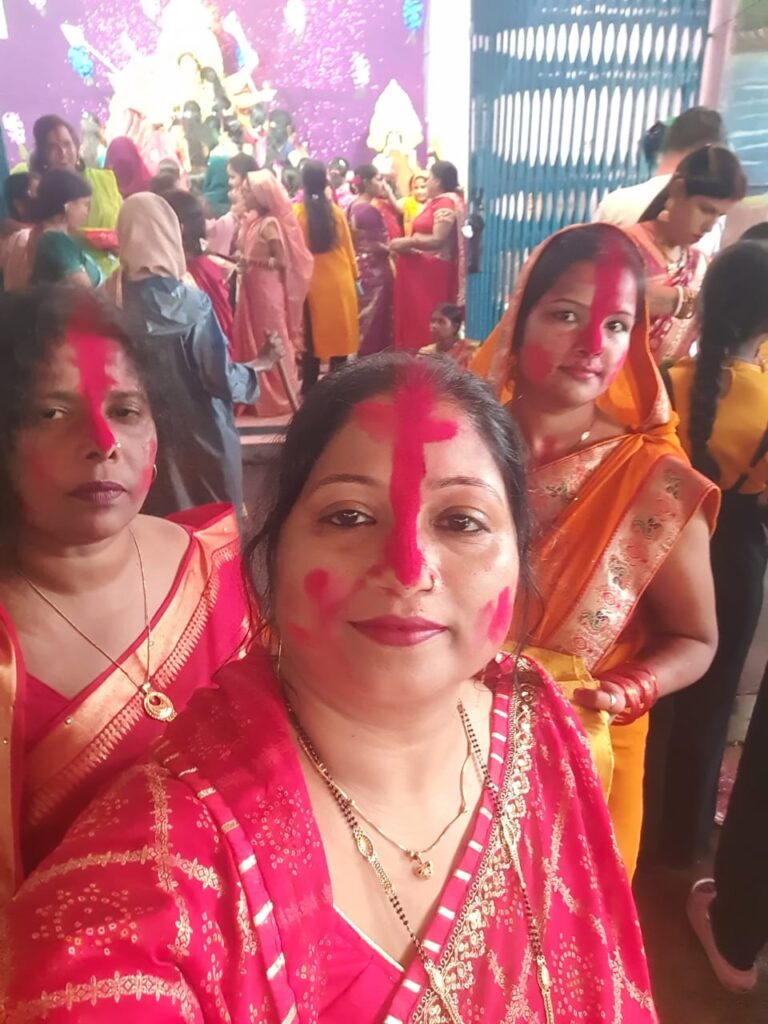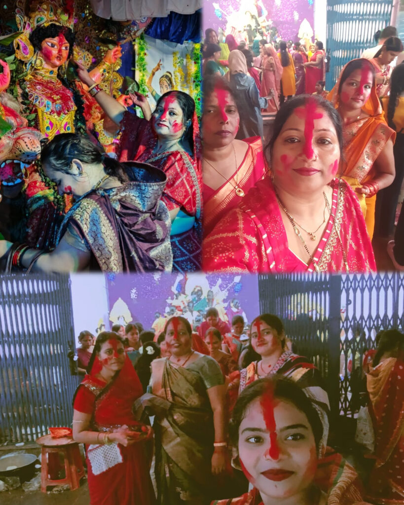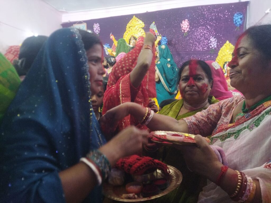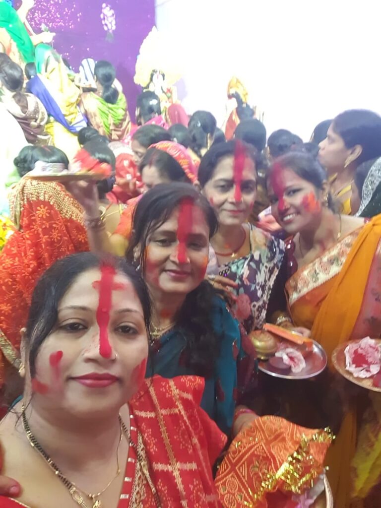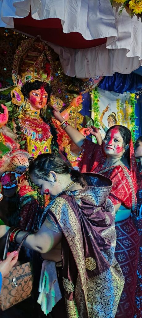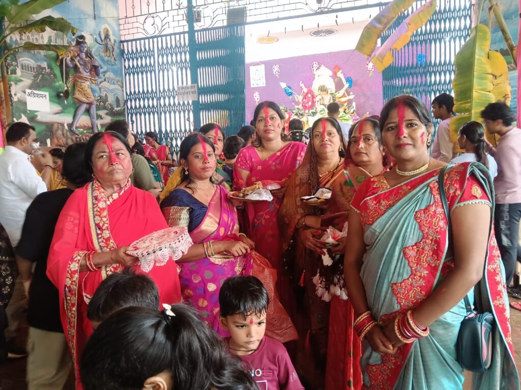 महिलाओं ने मां की प्रतिमा पर सिंदूर अर्पित कर श्रद्धा प्रकट की और फिर एक-