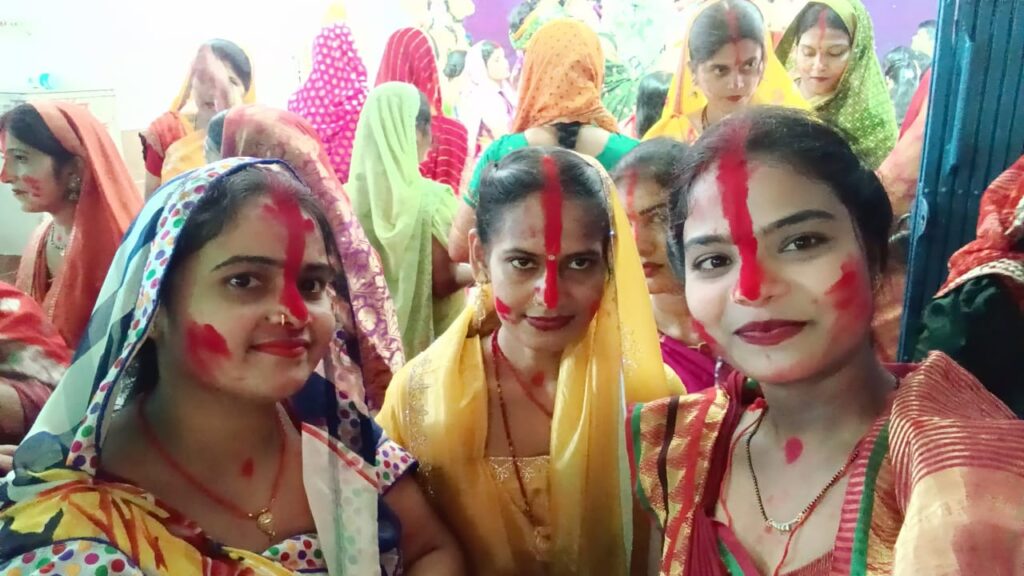 दूसरे को सिंदूर लगाकर सामूहिक रूप से उत्सव का आनंद लिया.