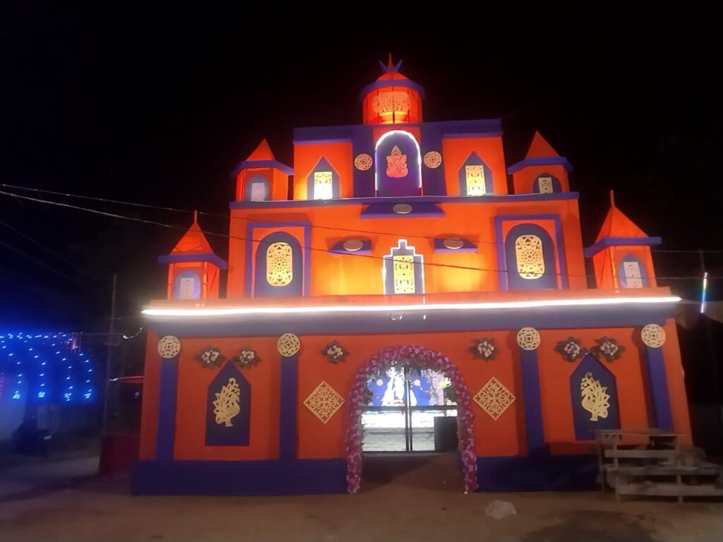 मां की मूर्ति की स्थापना की गई है कल विधिवत तरीके से माँ की पूजा अर्चना की जाएगी कॉलोनी परा में छोटे बच्चों के लिए कई 1 के झूले लग गए है, और कई तरह के खाने पीने का दुकान लगाए गए हैं
