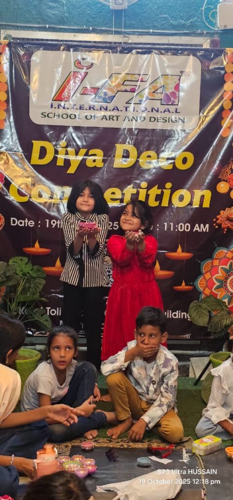 रांची, 19 अक्टूबर ’25 दीपावली की पूर्व संध्या एवं छोटी दीपावली के अवसर पर आईफा इंटरनेशनल, रांची द्वारा एक विशेष “डिज़ाइनर दिया मेकिंग वर्कशॉप” का आयोजन किया गया। इस अवसर पर बच्चों ने अपनी कल्पनाशक्ति और सृजनात्मकता का सुंदर प्रदर्शन किया। कार्यक्रम में भाग लेने वाले बच्चों ने विभिन्न प्रकार के दीयों को रंग, मोती, ग्लिटर और सजावटी सामग्रियों से अनोखे अंदाज़ में डिजाइन किया। हर एक दिया अपनी अलग पहचान और रचनात्मकता का उदाहरण बन गया। संस्था के निदेशक मोहम्मद साबिर हुसैन ने बताया कि इस आयोजन का उद्देश्य बच्चों में भारतीय संस्कृति, पारंपरिक कला और पर्यावरण-सुरक्षित दीपावली मनाने की भावना को प्रोत्साहित करना था। निर्णायक मंडली में शगुफ्ता बानो ,अलमा हसन, तथा आसेम के द्वारा विजेताओं का चयन हुआ वह इस प्रकार है जूनियर ग्रुप में पहला पुरस्कार जैनब और एलिजा दूसरा पुरस्कार अमार और आयत तीसरा पुरस्कार हुमरा और ईरा सीनियर ग्रुप में पहला पुरस्कार सिद्रा और सनोवर द्वितीय पुरस्कार मुनमुन और आयशा तृतीय पुरस्कार मिश्कत और जुमैरा को दिया गया विशिष्ट अतिथि श्रीमती जैनब के द्वारा दिया गया