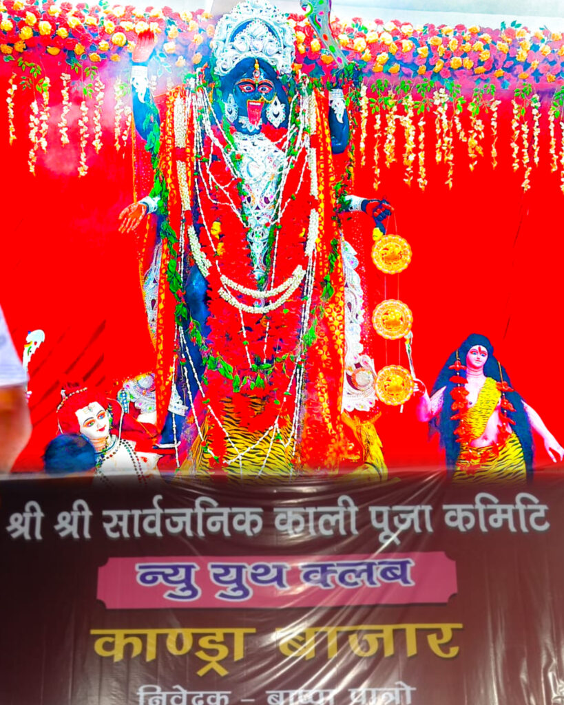ज्ञात हो कि प्रत्येक वर्ष की भांति इस वर्ष भी श्री श्री सार्वजनिक काली पूजा कमिटी, न्यू यूथ क्लब कंदरा बाजार के द्वारा भव्य काली पूजा का आयोजन किया गया है वहीं भव्य विशाल मूर्ति एवं विद्युत साज सज्जा लोगों को अपनी ओर आकर्षित कर रही है और हमेशा भक्तों का ताँता लगा हुआ है कमिटी के अध्यक्ष बप्पा पात्रो ने बताया कि ए के क्रिएटिव के कलाकारों के द्वारा कल गुरुवार को संध्या 8:00 बजे से जागरण की प्रस्तुति की जाएगी जिसमें खड़गपुर एवं जमशेदपुर के नामी कलाकार अपनी-अपनी कलाओं का प्रदर्शन करेंगे जिसमें हिंदी भोजपुरी बांग्ला भाषा में भजन प्रस्तुत किया जाएगा आयोजन समिति के द्वारा श्रद्धालुओं के लिए विशेष सुविधा का भी इंतजाम किया जाएगा ताकि उन्हें वहां किसी प्रकार का दिक्कत ना हो और आराम से बैठकर जागरण का आनंद ले सकें