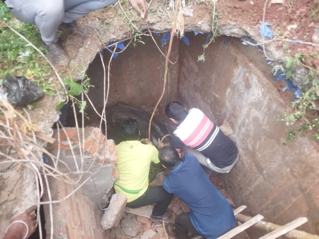 और भैंस के बच्चे को बचाने के लिए जी जान लगा दिए। इस तरह से सेफ्टी टैंक का ढक्कन खुला रहना बड़े दुर्घटना को आमंत्रण देता है अगर कोई बच्चा उसमें गिर जाता तो क्या होता सेफ्टी टंकी तो खाली पड़ा हुआ था अगर टंकी भरा हुआ होता तो उस भैस के बच्चे की जान बचाना मुश्किल हो जाता, यह एक बहुत बड़ी लापरवाही है ऐसी लापरवाही नहीं होनी चाहिए। मौके पर अनीश ठक्कर, प्रेम नाथ सोलंकी, पिंटू कुमार, गौतम पोद्दार एवं दर्जनों कार्यकर्ता और स्थानीय लोग उपस्थित रहें।