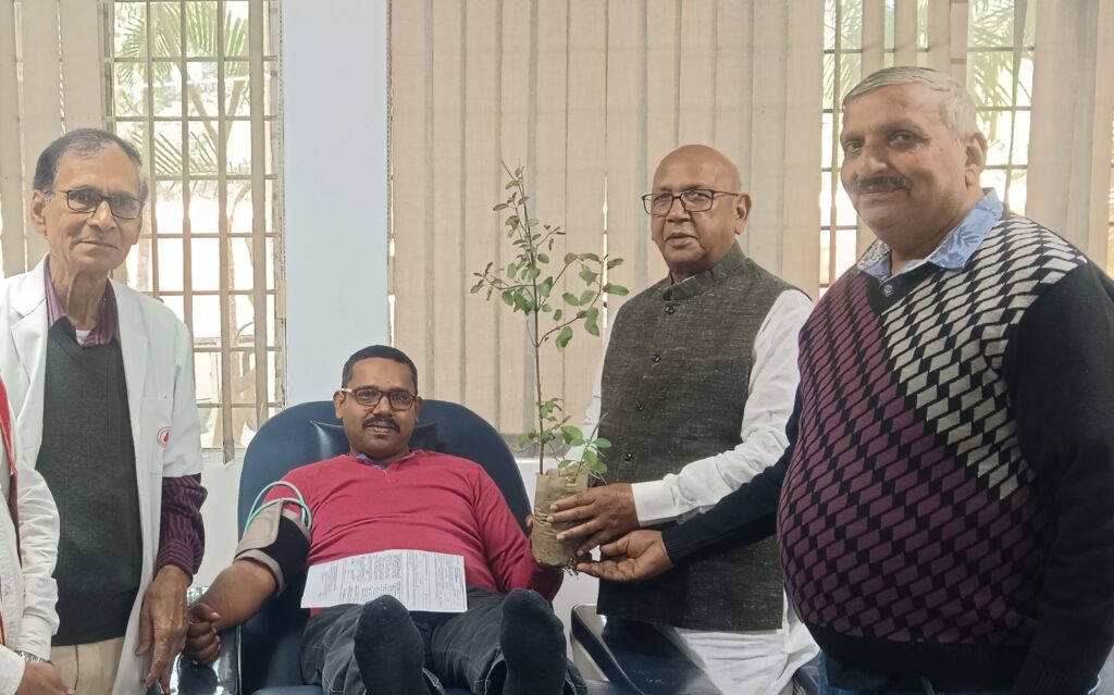 जमशेदपुर : आनंद मार्ग के रक्तदान शिविर में रोगियों के स्वास्थ्य लाभ के लिए 4 घंटे में 10 रक्तदाताओं ने किया रक्तदान । विधायक सरयू राय जी ने रक्तदाताओं को पौधा देकर सम्मानित किया। ब्लड सेंटर में उपस्थित पश्चिम विधानसभा के विधायक सरयू राय जी को आनंद मार्ग के सुनील आनंद ने पौधा देकर ब्लड सेंटर में स्वागत किया ।आनंद मार्ग यूनिवर्सल रिलीफ टीम ग्लोबल कि ओर से ईश्वर कोटि के मनुष्यों ने 10 यूनिट रक्तदान किया एवं 50 पौधा वितरण किया गया । सुनील आनंद का कहना है कि जितने भी रक्तदाता निस्वार्थ भाव से रक्तदान करते हैं वह सभी लोग ईश्वर कोटि के मनुष्य है करण इस रक्तदान करने में रक्तदाता का किसी प्रकार का कोई भी स्वार्थ नहीं रहता परम पुरुष के बच्चे अपने संस्कारगत कारण से कष्ट भोग कर रहे हैं उन बच्चों के स्वास्थ्य लाभ के लिए जो रक्तदान करते हैं इसलिए इस तरह के मनुष्य को ईश्वर कोटि के मनुष्य कहा गया है।