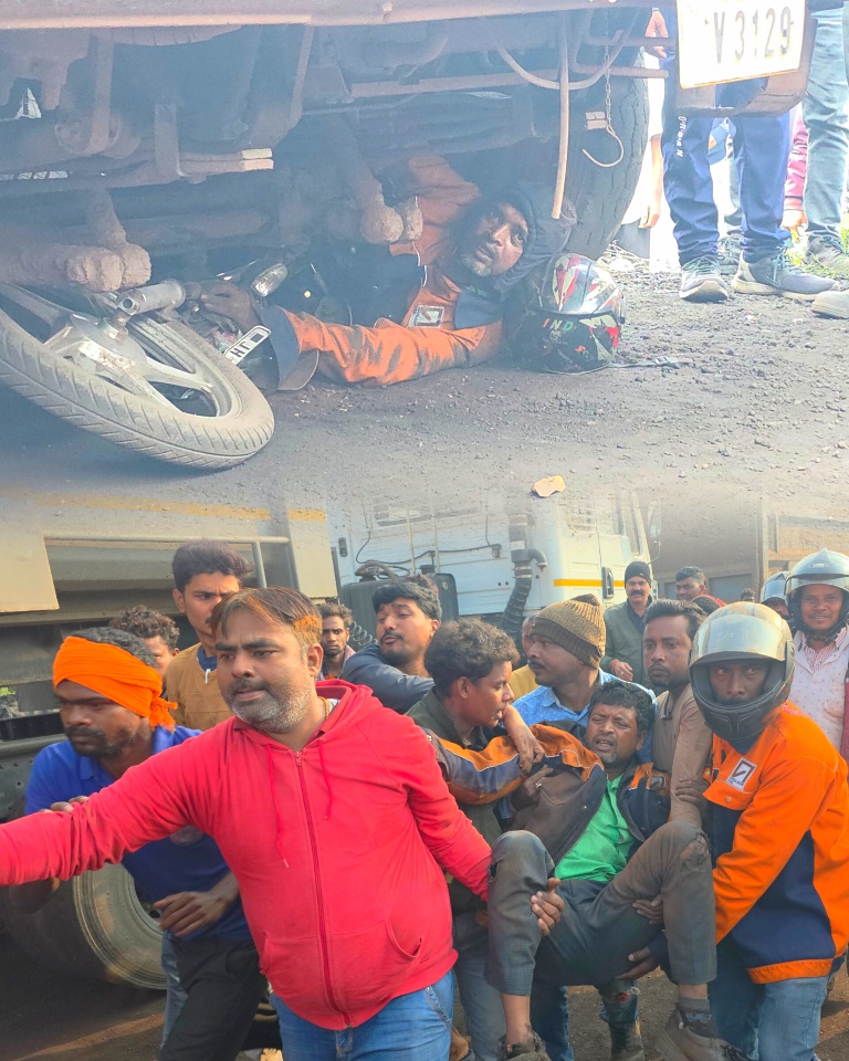 कांड्रा थाना अंतर्गत अमलगम रोड में शुक्रवार सुबह अमानवीय लापरवाही और अव्यवस्थित ट्रैफिक व्यवस्था ने एक बड़ा हादसा पैदा कर दिया। ड्यूटी पर जा रहे अमलगम स्टील प्लांट के कर्मचारी सुभाष प्रमाणिक को एक तेज रफ्तार हाइवा ने जोरदार टक्कर मारी और लगभग 30 फीट तक घसीटते हुए ले गया। टक्कर इतनी भीषण थी कि सुभाष अपनी मोटरसाइकिल समेत हाइवा के नीचे लगभग आधे घंटे तक फंसे रहे।