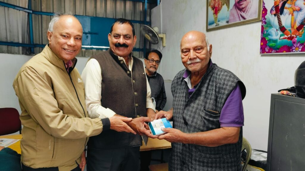 जमशेदपुर। जमशेदपुर पश्चिम के विधायक सरयू राय के जनसुविधा प्रतिनिधि मुकुल मिश्रा ने बुधवार को बिष्टुपुर स्थित विधायक निवास/कार्यालय में सोनारी निवासी केएम तिवारी को कान की मशीन प्रदान की। श्री तिवारी को काफी समय से सुनने में तकलीफ हो रही थी। मशीन प्राप्त होने पर श्री तिवारी ने विधायक सरयू राय के प्रति आभार व्यक्त किया।
