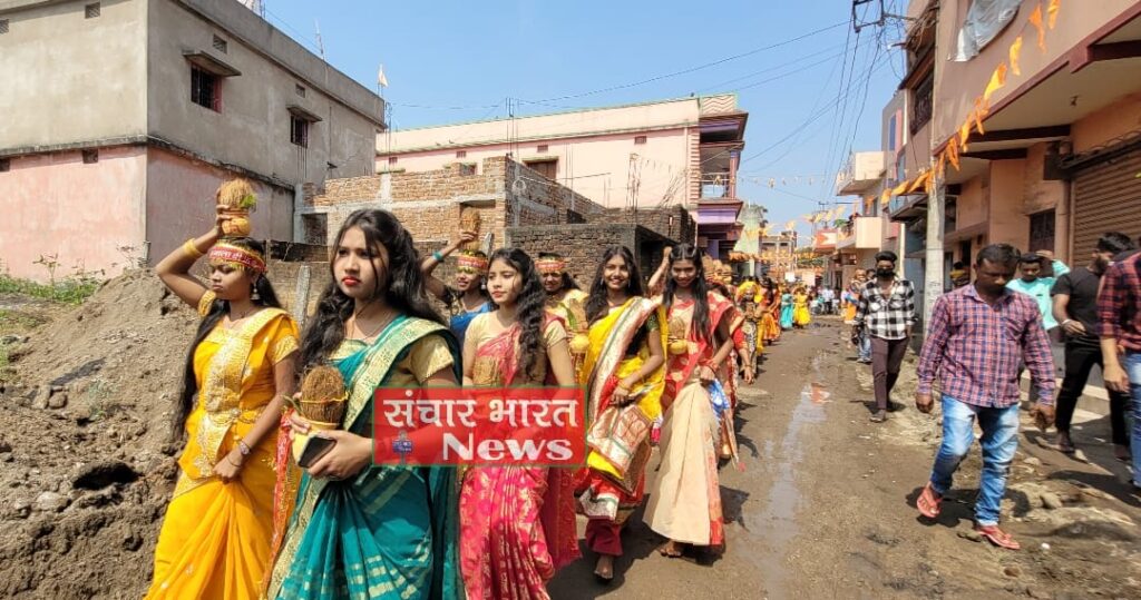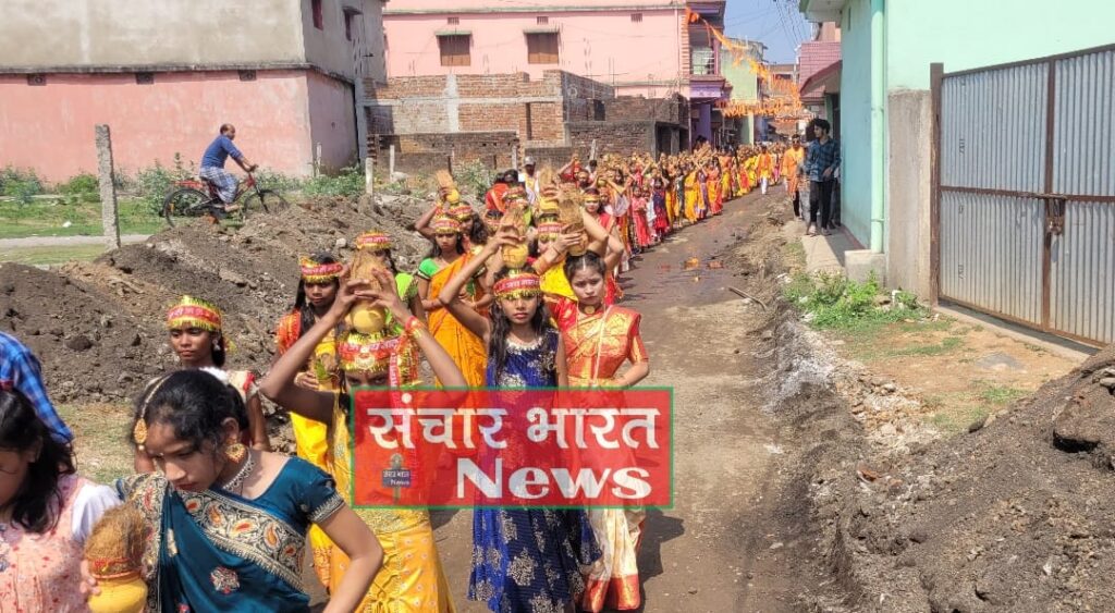 शनिवार को युवक समिति कांड्रा बस्ती बजरंग अखाड़ा कमेटी के तत्वाधान में चैत्र नवरात्र (Chaitra Navratri ) महोत्सव पर 501 महिलाओं और युवतियों ने कांड्रा बांधा घाट स्थित छोटा तलाब से कांड्रा बस्ती स्थित बजरंगबली मंदिर प्रांगण तक कलश यात्रा निकाली। मणिकुई स्थित स्वर्णरेखा नदी से नौ कन्याओं द्वारा कलश में जल भरकर हनुमान मंदिर के प्रांगण में लाया गया।