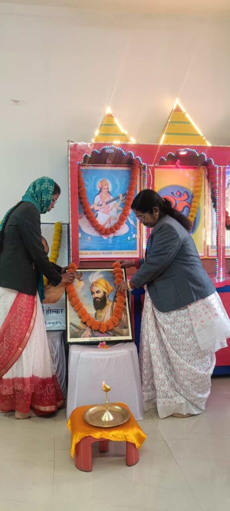 कार्यक्रम का शुभारंभ विद्यालय की प्रधानाचार्या सीमा पालित गुरु मां ने गुरु गोविंद सिंह के छायाचित्र पर माल्यार्पण एवं दीप प्रज्वलित कर किया तत्पश्चात् बहन आराध्या कुमारी द्वारा गुरु गोविंद सिंह का जीवन परिचय प्रस्तुत किया गया।