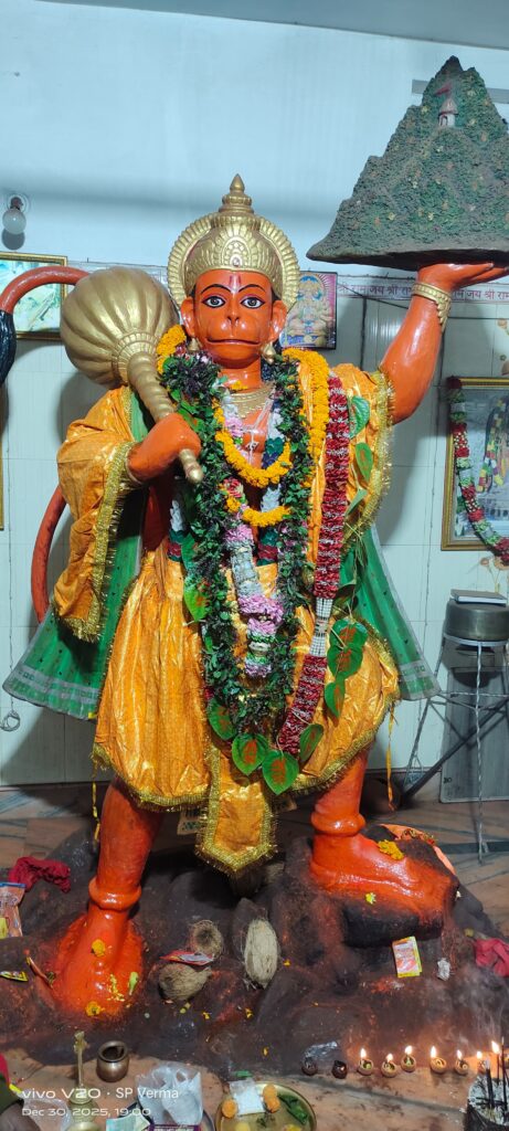 भक्तों ने पूरे मनोयोग से हनुमान चालीसा का पाठ किया और उसके बाद भगवान हनुमान की भव्य आरती उतारी गई।आरती के जयघोष से पूरा क्षेत्र जय बजरंगबली के नारे से गूंज उठा।