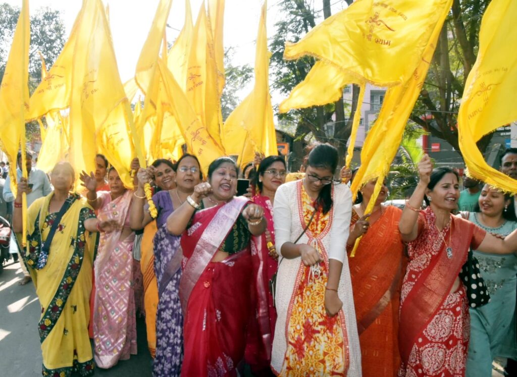 जमशेदपुर। शनिवार को श्री श्याम सेवा संघ, सोनारी द्धारा 23 वां श्य्ााम महोत्सव धूमधाम से मनाया गया। यह धार्मिक कार्यक्रम संस्था के अध्यक्ष अशोक दीवान के नेतृत्व में दो चरणों में संपन्न हुआ। प्रथम चरण में दोपहर 01.30 बजे से सोनारी रांम मंदिर से विभिन्न मार्ग होते हुए लक्ष्मी नारायण मारवाड़ी मंदिर (महोत्सव स्थल) तक लगभग चार किलोमिटर निशान शोभा यात्रा निकाली गयी। जिसमें 251 श्याम प्रेमी निशान लिये बाबा श्याम का जयकारा लगाते और भजन गाते हुए चल रहे थे। शोभा यात्रा में सबसे आगे दो ब़ड़े ध्वजा एक बाबा श्याम और दूसरा हनुमान जी का लिये भक्त चल रहे थे। शोभा (निशान) यात्रा के दौरान भक्तों द्धारा लगाये जा रहे जय श्री श्याम, शीश के दानी, हारे का सहारा के जयघोष पूरे रास्ते गूंजता रहा। शनिवार को सोनारी श्याममय रहा। निशान शोभा यात्रा और जागरण में कई गणमान्य लोग शामिल होकर बाबा श्याम का आशीर्वाद लिया। इससे पहले राम मंदिर में निशान की पूूजा मुख्य यजमान पियुष चूड़ीवाला और महेश अग्रवाल ने किया। पंडित विपिन पांडेय ने विधिवत रूप से पूजा अर्चना करायी। शोभा यात्रा में सबसे आगे एक घोड़ा पर सवार बाबा श्याम का रूप बनाये कलाकार और उसके पीछे खुले वाहन पर सजा बाबा श्याम का दरबार के साथ भक्त चल रहे थे।