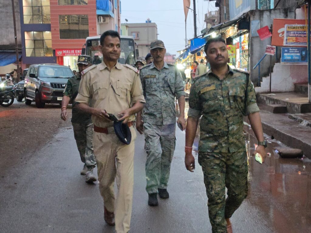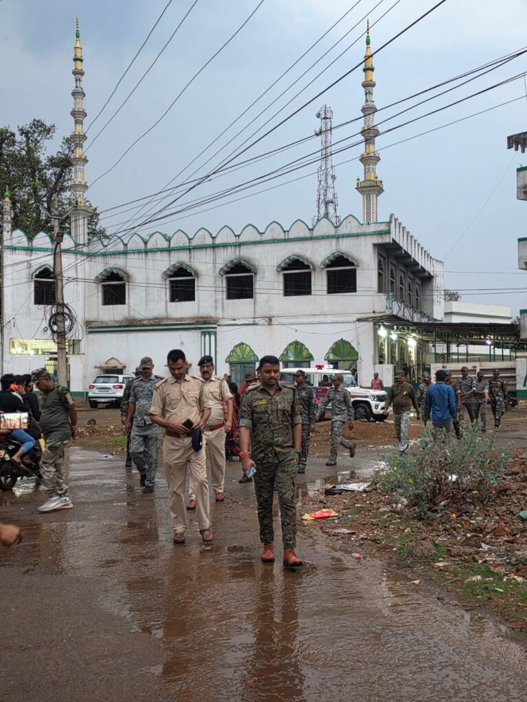 थाना प्रभारी नयन कुमार सिंह के नेतृत्व में रिमझिम बारिश के बीच शाम 5 बजे से फ्लैग मार्च शुरू हुआ। यह मार्च नोवामुंडी थाना से निकलकर लखनसाई जामा मस्जिद बस्ती, ओवरब्रिज, रेलवे फाटक, बाजार परिसर, स्टेशन रोड होते हुए डीवीसी चौक तक पहुंचा।