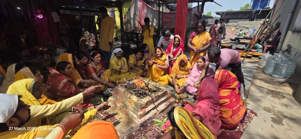 कार्यक्रम का शुभारंभ मंत्रोच्चार के साथ हुआ, जहाँ विद्वान पंडित सोविक चटर्जी ने पूरी श्रद्धा और विधि-विधान के साथ पूजा-अर्चना संपन्न कराई। उनके मार्गदर्शन में अनुष्ठान के सभी धार्मिक नियमों का पालन किया गया, जिससे पूरा वातावरण शुद्ध और आध्यात्मिक हो गया।