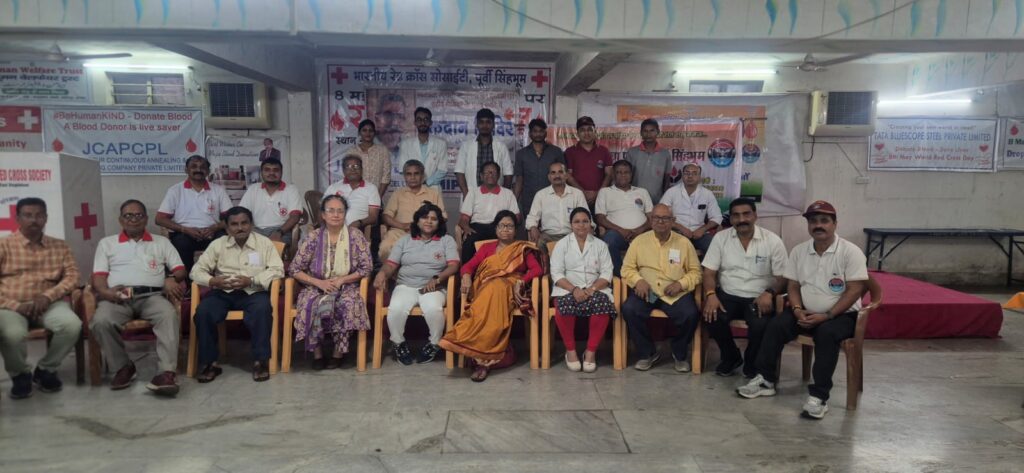 हर वर्ष की भांति इस वर्ष भी 8 अप्रैल 2026 दिन बुधवार को रेडक्रॉस सोसाइटी साकची के सभागार में पूर्व सैनिक सेवा परिषद पूर्वी सिंहभूमि द्वारा देश के महान स्वतंत्रता सेनानी मंगल पांडेय एवं चितरंजन मुखर्जी की याद में रक्तदान शिविर का आयोजन किया। जिसमें मुख्य अतिथि के रूप में स्थानीय आर्मी यूनिट के कमांडिंग ऑफिसर कर्नल निखिल शर्मा विशिष्ट अतिथि के रूप में एशिया के उपाध्यक्ष सुधीर सिंह अमलेश झा समाजसेवी पूर्वी घोष शिव शंकर सिंह रेड क्रॉस सोसाइटी के मानद सचिव विजय सिंह लांयस क्लब से सुदीप्तो मुखर्जी उपस्थित थे। सम्मानित अतिथियों ने संयुक्त रूप से दीप प्रज्वलन एवं भारत माता के चित्र पर श्रद्धा सुमन अर्पित करते हुए देश के वीर शहीदों को नमन किया। कार्यक्रम का संचालन पूर्व सैनिक सेवा परिषद के जिला महामंत्री सुशील कुमार सिंह ने किया संगठन के पदाधिकारी ने सभी अतिथियों को साल एवं बुके देकर सम्मानित किया। सुबह 9:00 बजे से ही रक्तदान शुरू हुआ और संध्या 4:00 बजे तक रक्तदाताओं की लाइन लगी रही। जमशेदपुर रक्तदान करने में पूरे देश में महत्वपूर्ण स्थान रखता है। आज के कैंप में जहां कुछ लोगों ने पहली बार रक्तदान शुरू किया। वहीं टेल्कोकर्मी सुखविंदर सिंह ने 110 वां रक्तदान किया। सभी अतिथियों ने रक्तदाताओं का हौसला बढ़ाया। पहले रक्तदाता पूर्व वायु सैनिक राजकुमार कसेरा एवं अंतिम रक्तदाता सार्जेंट अजय कुमार सिंह बने।