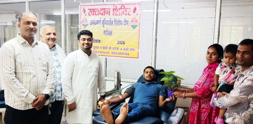जमशेदपुर : आनंद मार्ग यूनिवर्सल रिलीफ टीम ग्लोबल एवं जमशेदपुर ब्लड सेंटर कि ओर से 3 घंटे के रक्त दान शिविर में ईश्वर कोटि के मनुष्यों ने 30 यूनिट रक्तदान किया एवं 50