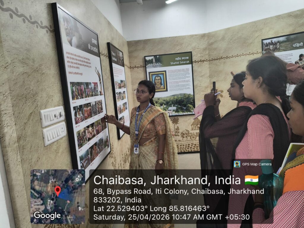 चाईबासा पहुंचने पर केंद्र के संरक्षक रश्मि कोड़ा एवं गोवर्धन गोप ने विद्यार्थियों का स्वागत किया और उन्हें बताया कि यह केंद्र जनजातीय जीवन दर्शन संग्रहालय से भी जुड़ा है। इस अनूठे संग्रहालय की स्थापना झारखंड वन विभाग, टाटा स्टील (OMQ डिवीजन) तथा सेंटर फॉर एनवायरनमेंट एक्सीलेंस के संयुक्त प्रयास से की गई है, जो क्षेत्र की प्राकृतिक विरासत और जनजातीय संस्कृति का संगम है। भ्रमण के दौरान विद्यार्थियों ने झारखंड के ऐतिहासिक स्थलों जैसे वांदा, बरकट्टा, करहबाड़ी, बादाम, रामगढ़, इटखोरी एवं सतपहाड़ की मूर्तिकला, प्राचीन शिलालेखों और गुफा चित्रों के बारे में विस्तृत जानकारी प्राप्त की
