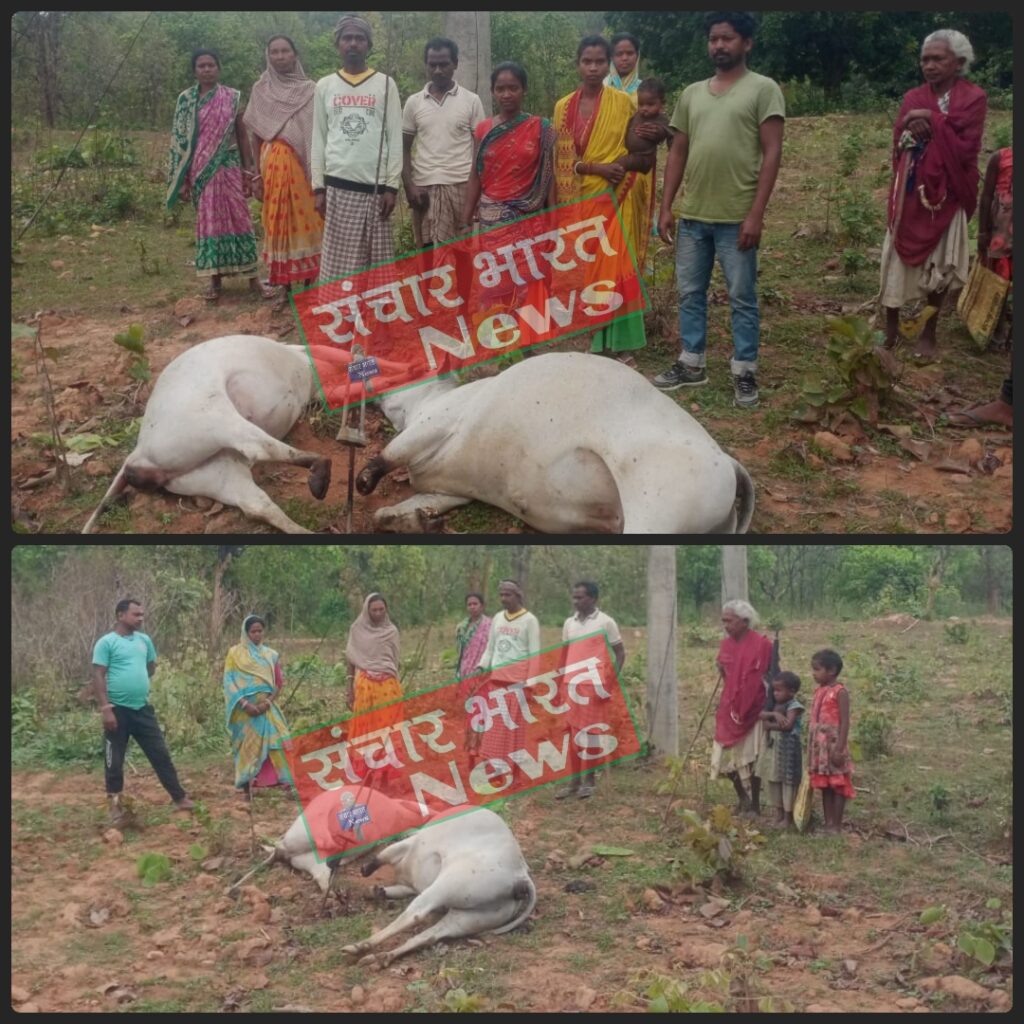 सोमवार को चरवाहे कुछ समझ पाते इसके पहले ही दो मवेशी पोल के ऊपर से नीचे जमींन तक खिंचे हुए ऩगे बिजली के तार के सम्पर्क में आ गए और वहीं दो मवेशियों की मौत हो गई. गनिमत तो यह रही कि कोई आदमी नंगे बिजली की तार की संपर्क में नहीं आया वरना बड़ी दुघर्टना घट सकती थी. वहीं समाज सेवी मंगल मुंडा ने बिजली विभाग से उचित मुआवजा देने की मांग की है .