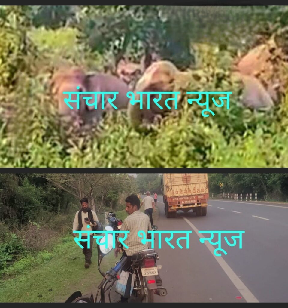 वहीं ग्रामीणों ने बताया कि हाथी का झुंड सुबह जंगल से निकलकर हैप्पी लकी होटल के समीप सड़क के बगल में अड़ाल कोचा और बोड़ बेड़ा के बीच झाड़ियों में डेरा जमाए हुए हैं हाथी का झुंड सड़क के बगल में विचरण करते हुए देखा गया। ग्रामीणों ने हाथी को सड़क से बड़ी मशक्कत से भगाया।