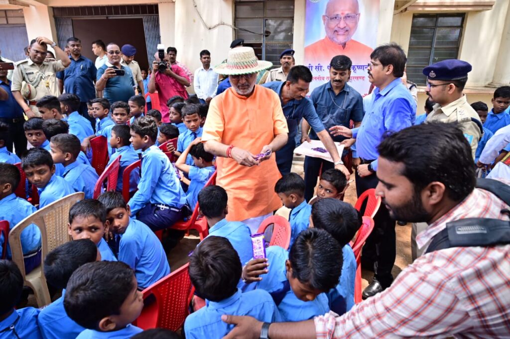 सरायकेला: झारखंड के राज्यपाल सी.पी. राधाकृष्णन सोमवार को सरायकेला पहुंचे तथा क्षेत्र के दो विद्यालयों सहित एक पंचायत सचिवालय का भ्रमण किए। इस क्रम छात्र छात्राओं सहित शिक्षा के संबंध एवं पंचायत सचिवालय में ग्रामीणों से सरकारी योजनाओं एवं उनके जसमस्याओं पर उन्होंने संवाद की।