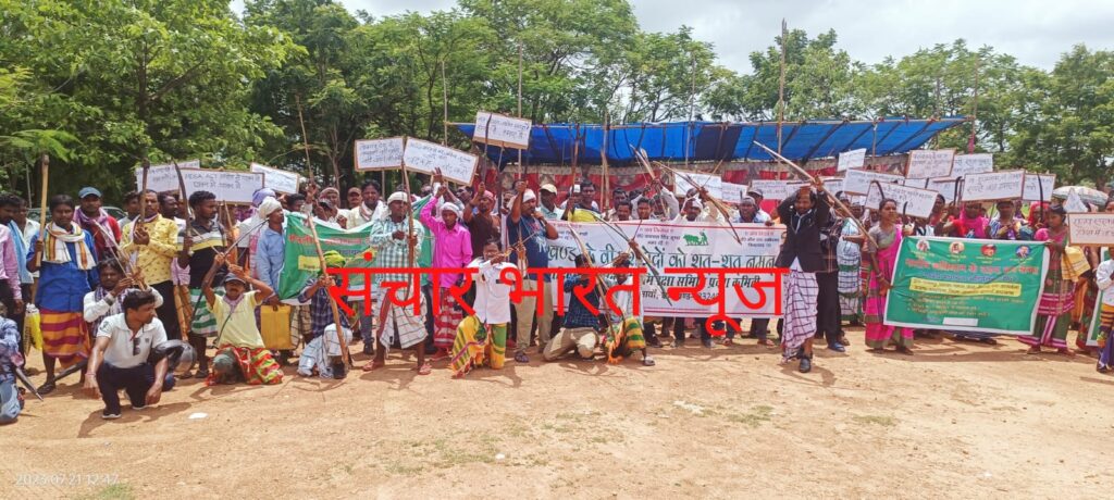 स्वर्णरेखा बहुद्देशीय परियोजना के तहत संजय नदी पर गंजिया बराज बांध और केनाल के निर्माण के विरोध में ग्राम प्रधान सह मांझी बाबा विरधान मांझी और आदिवासी मूलवासी भूमि रक्षा मोर्चा के अध्यक्ष सह मुख्य सलाहकार संग्राम मार्डी के नेतृत्व में आज सरायकेला उपायुक्त कार्यालय के समक्ष एक दिवसीय सामूहिक सांकेतिक भूख हड़ताल एवं धरना प्रदर्शन किया गया.