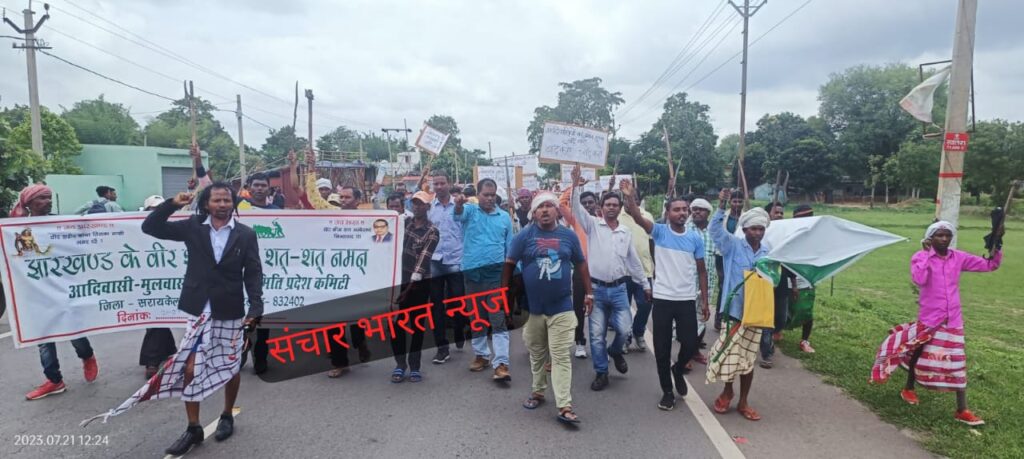 वहीं मूलवासी भूमि रक्षा मोर्चा के अध्यक्ष सह मुख्य सलाहकार संग्राम मार्डी नेबताया कि आज सरायकेला उपायुक्त के माध्यम से महामहिम राष्ट्रपति महोदया, महामहिम राज्यपाल, झारखंड सरकार को ज्ञापन सौंपा गया.वही मुख्यरूप से संग्राम मार्डी आदिवासी मूलवासी भूमि रक्षा मोर्चा के मुख्य सलाहकार सह अध्यक्ष, खुचिडीह ग्राम प्रधान सह मांझी बाबा विरधान माझी,राजेश हांसदा ग्राम प्रधान सह मांझी बाबा चौड़ा , बिरसा सेना से दिनकर कछयप, झारखंड पूर्णउथान सनी सिंकु, पूर्व विधायक बहादुर उरॉव,वार्ड सदस्य रुकमणी हांसदा, शिव राम बास्के , दशरथ हेंब्रम ,भगवत बास्के, शिवनाथ बेसरा, भरत हांसदा,साकरो मझियाईंन तुलसी हांसदा आदि लोग उपस्थित थे.